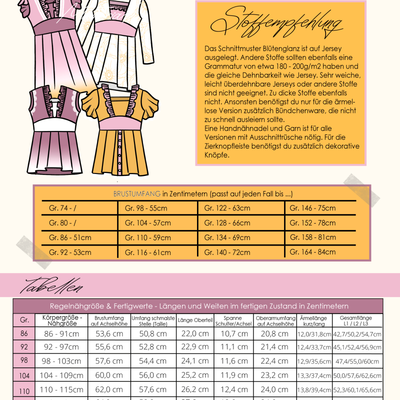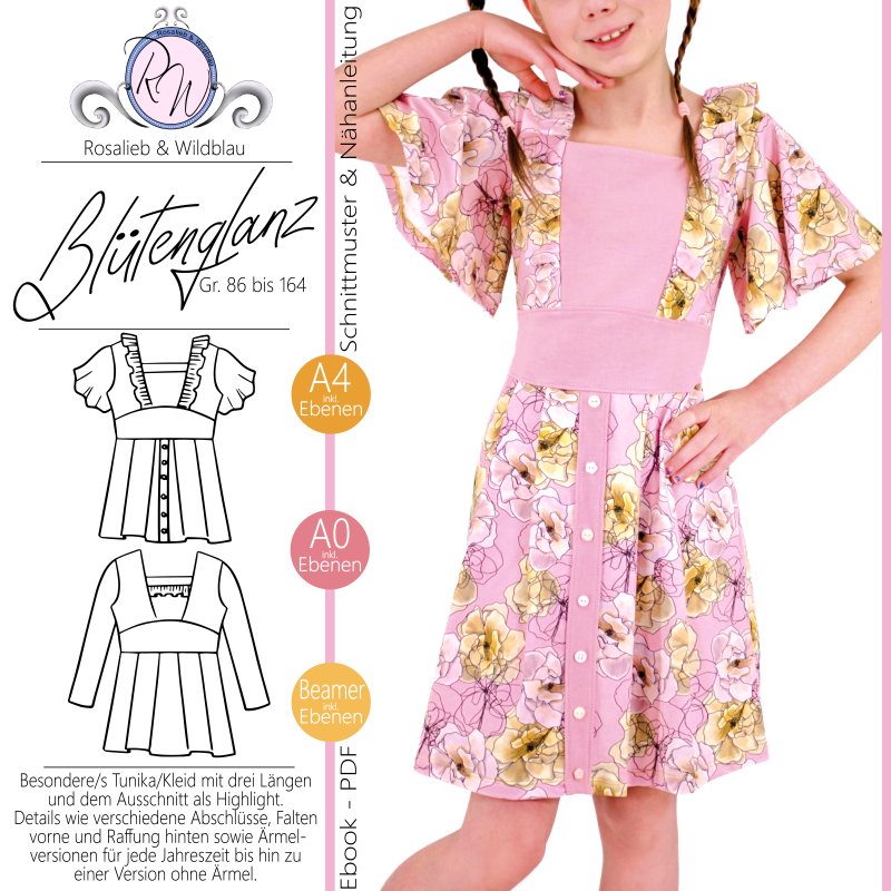 Phia's Elegance - Schnittmuster Kleid, Top in den Größen 68-164 :