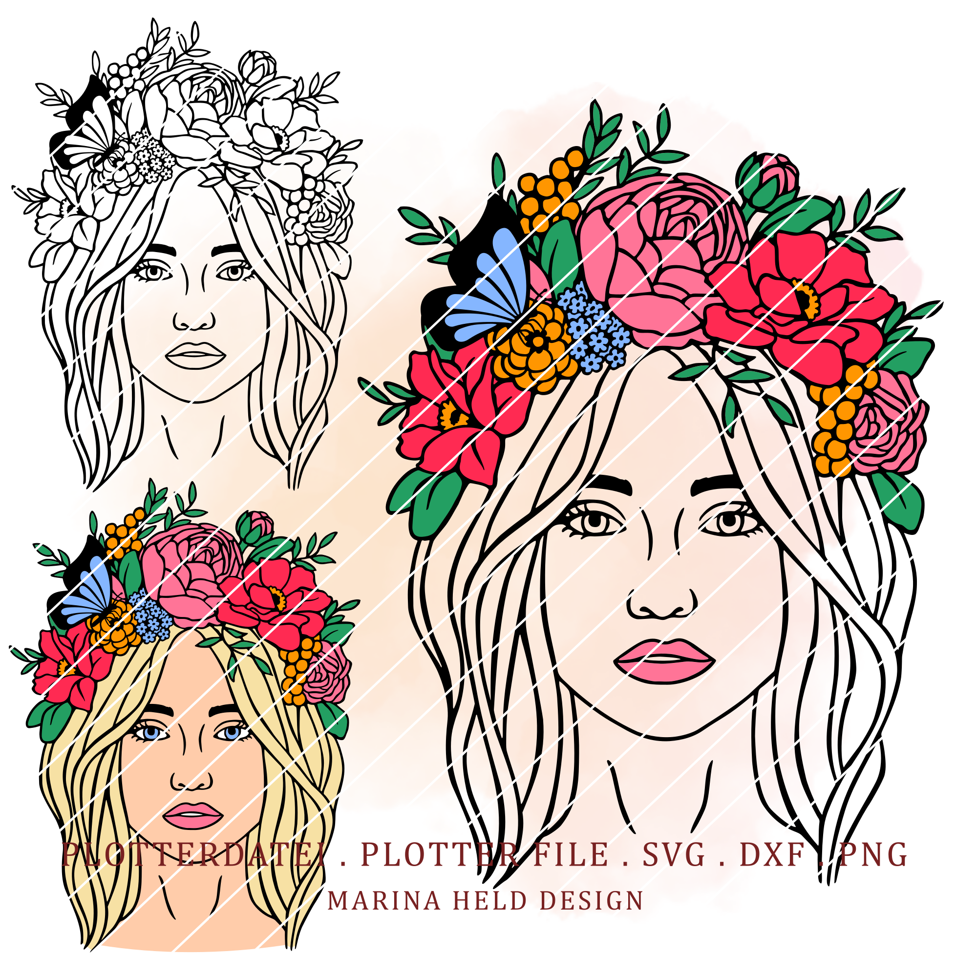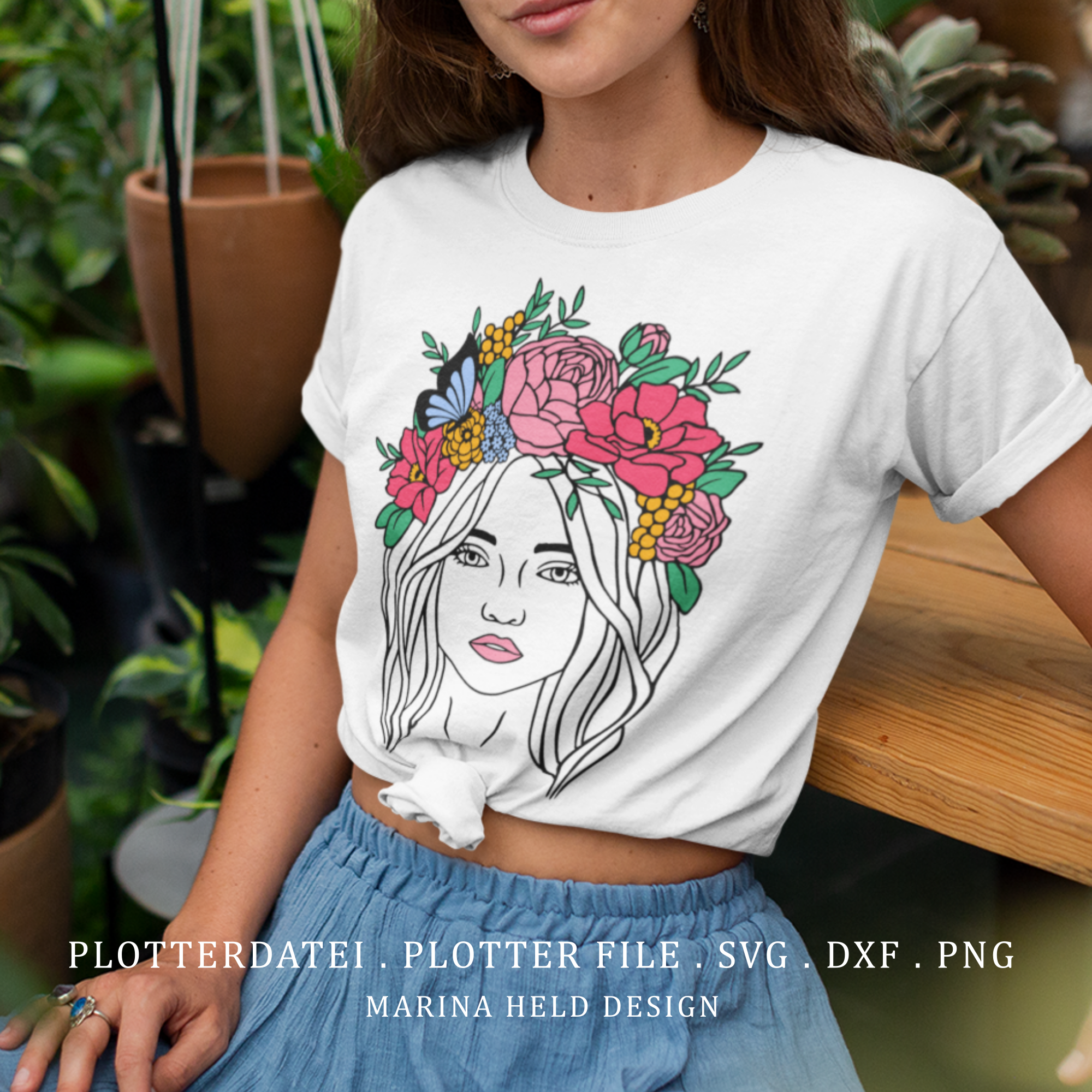 Plotterdatei Boho Blumenfrau 3 Farbvarianten