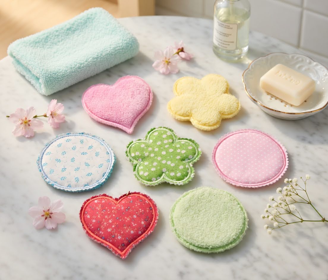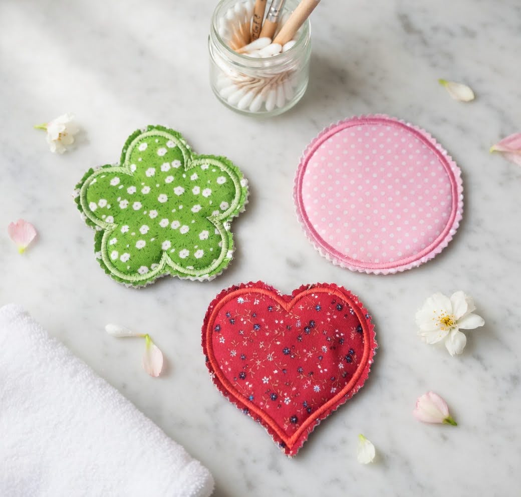 Stickdatei Waschpads ITH Set 2667 – Herz, Blume & Kreis – Abschminkpads