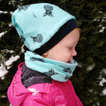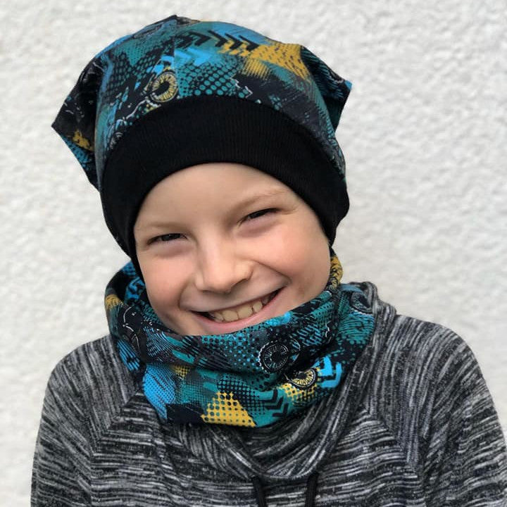 Wichtiger Hinweis: Bei dem Ergebnissen aus diesem Schnittmuster handelt es sich um eine Mütze inkl. Schal. Dieser geht wie jeder Schal um den Hals und daher sollten kleine Kinder diesen nicht ohne Aufsicht tragen.
