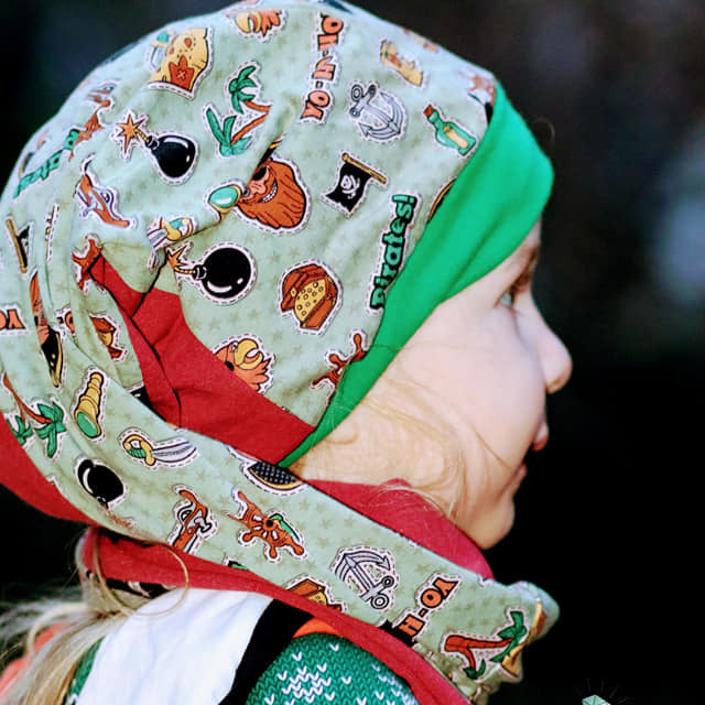 Die Main Cap'n'Scarf "Zipfel"-Mütze ist perfekt für Stoffreste geeignet und ist eine Kombination aus Mütze und Schal. In der langen Version genäht wird sie einmal komplett um den Hals gewickelt (dieser Teil bildet den Schal) und der Zipfel fällt am Ende über die Schulter nach vorne.