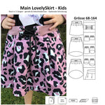 Der Main LovelySkirt ist ein Faltenrock mit Kellerfalten. wahlweise kann dieser in drei Längen und zwei Versionen (vorne‐kurz‐hinten‐lang oder gerade) genäht werden.