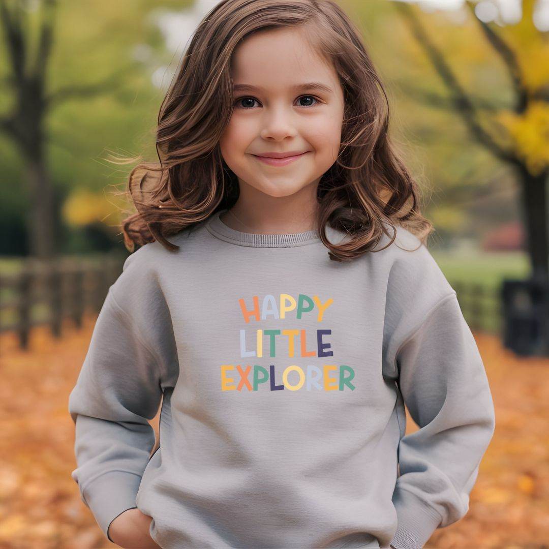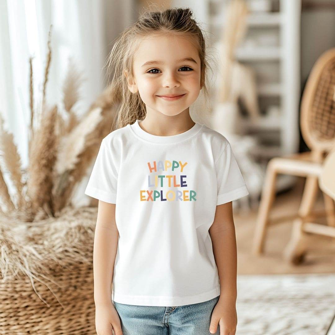 Plotterdatei „Happy Little Explorer“ – fröhliches Typografie-Design für Kinderkleidung & DIY-Projekte
