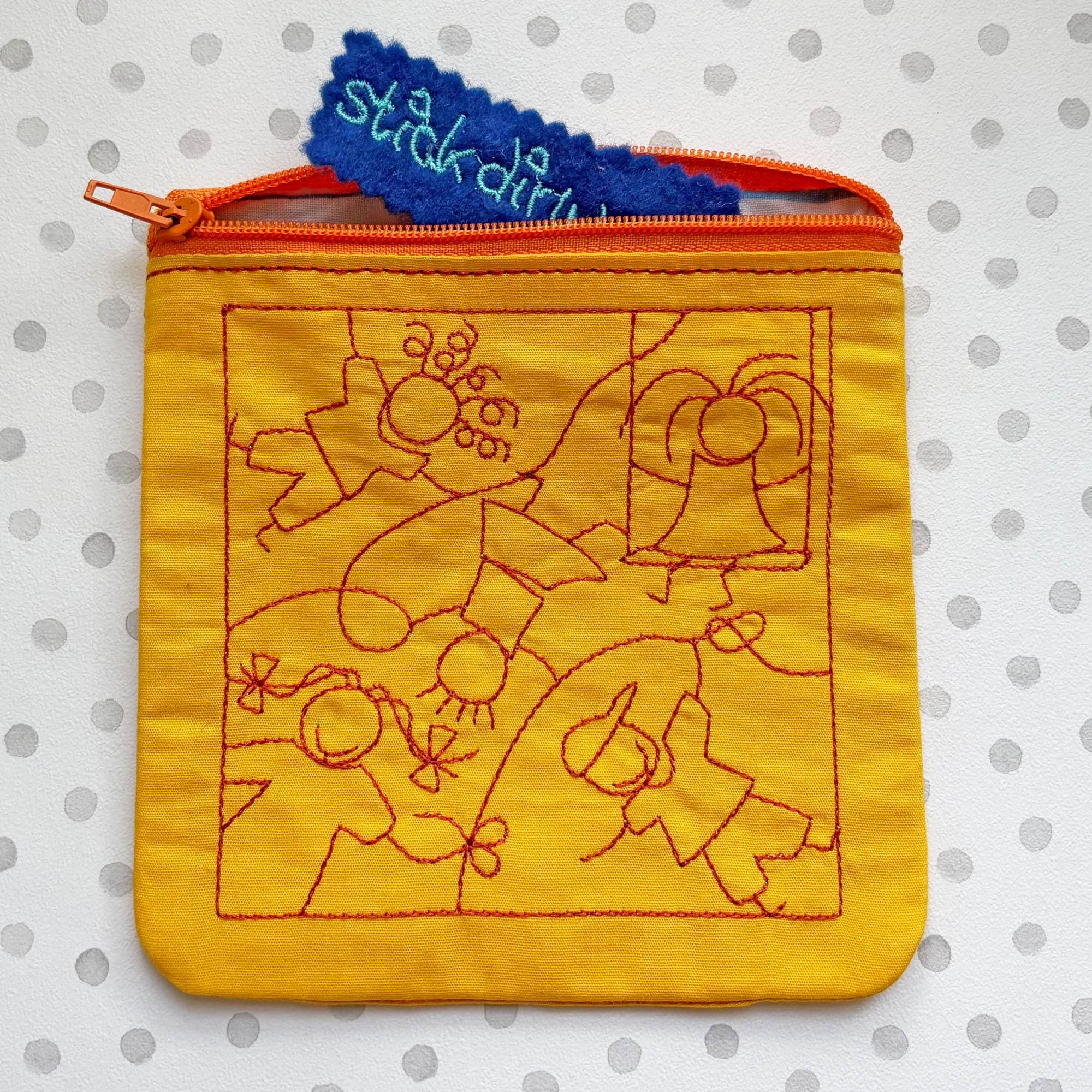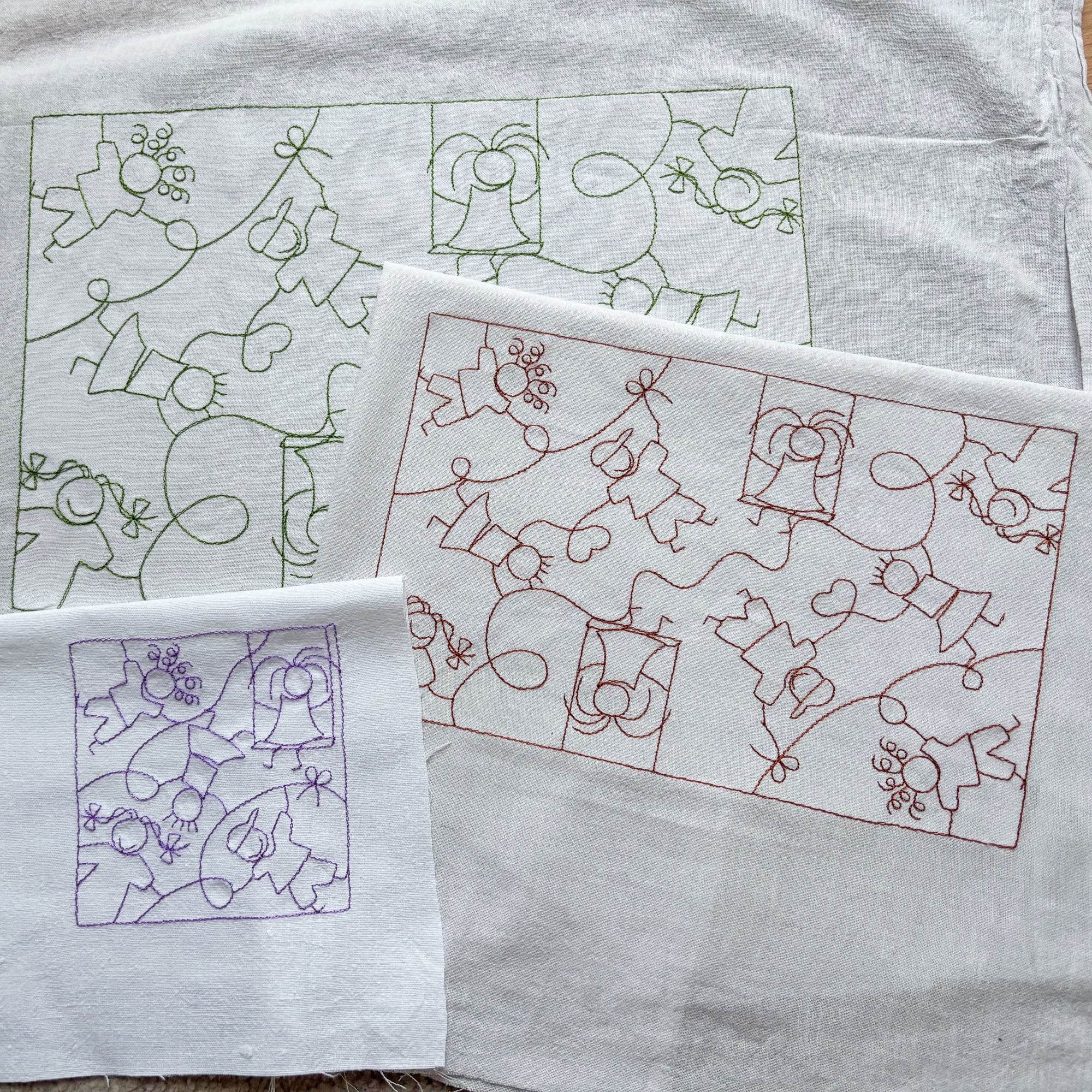 Die Motive werden als Redwork Datei in doppeltem Laufstich gestickt.