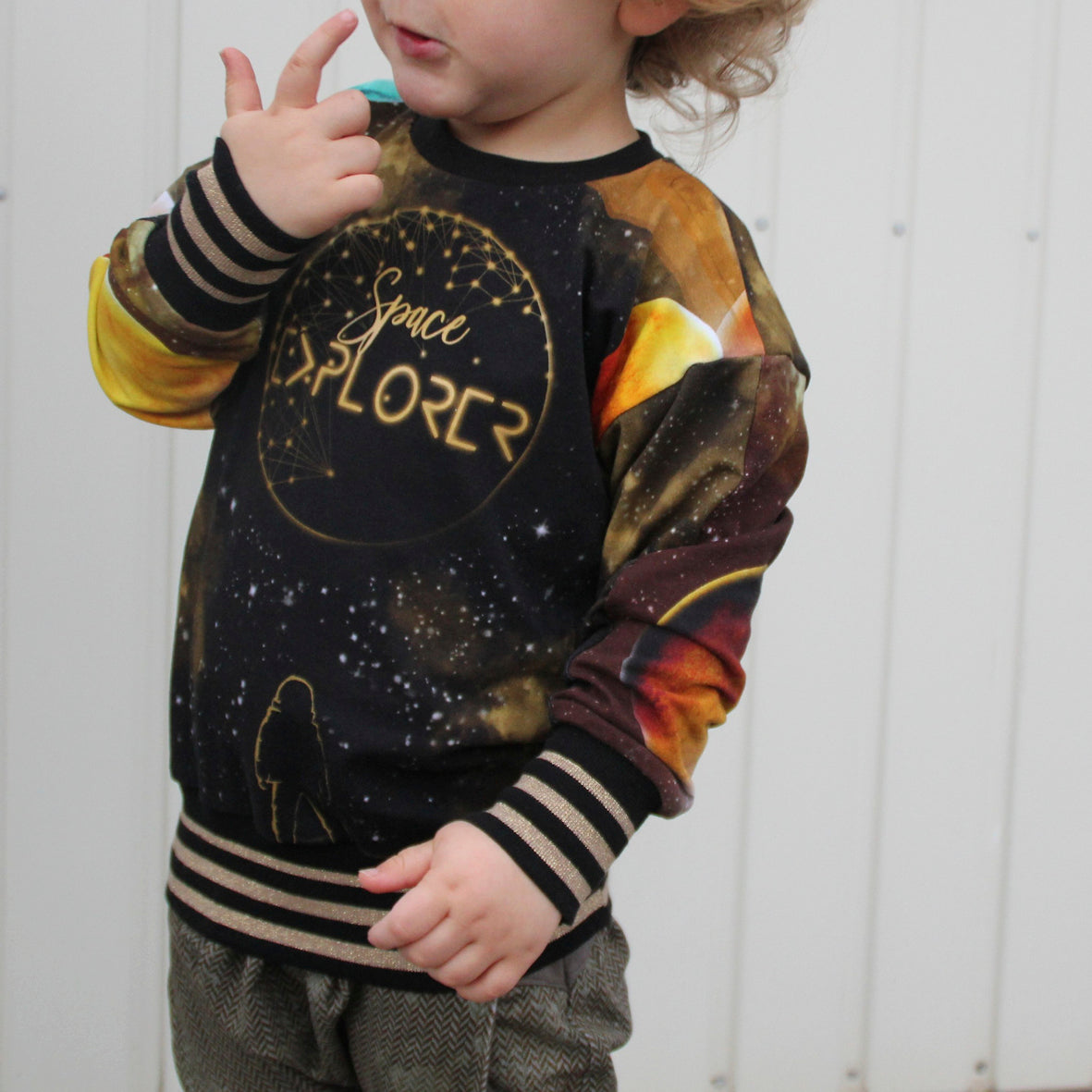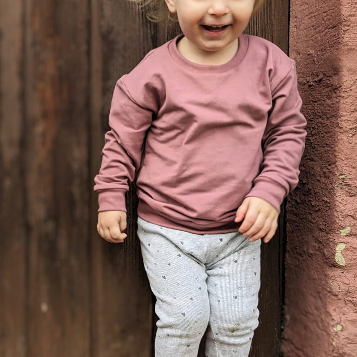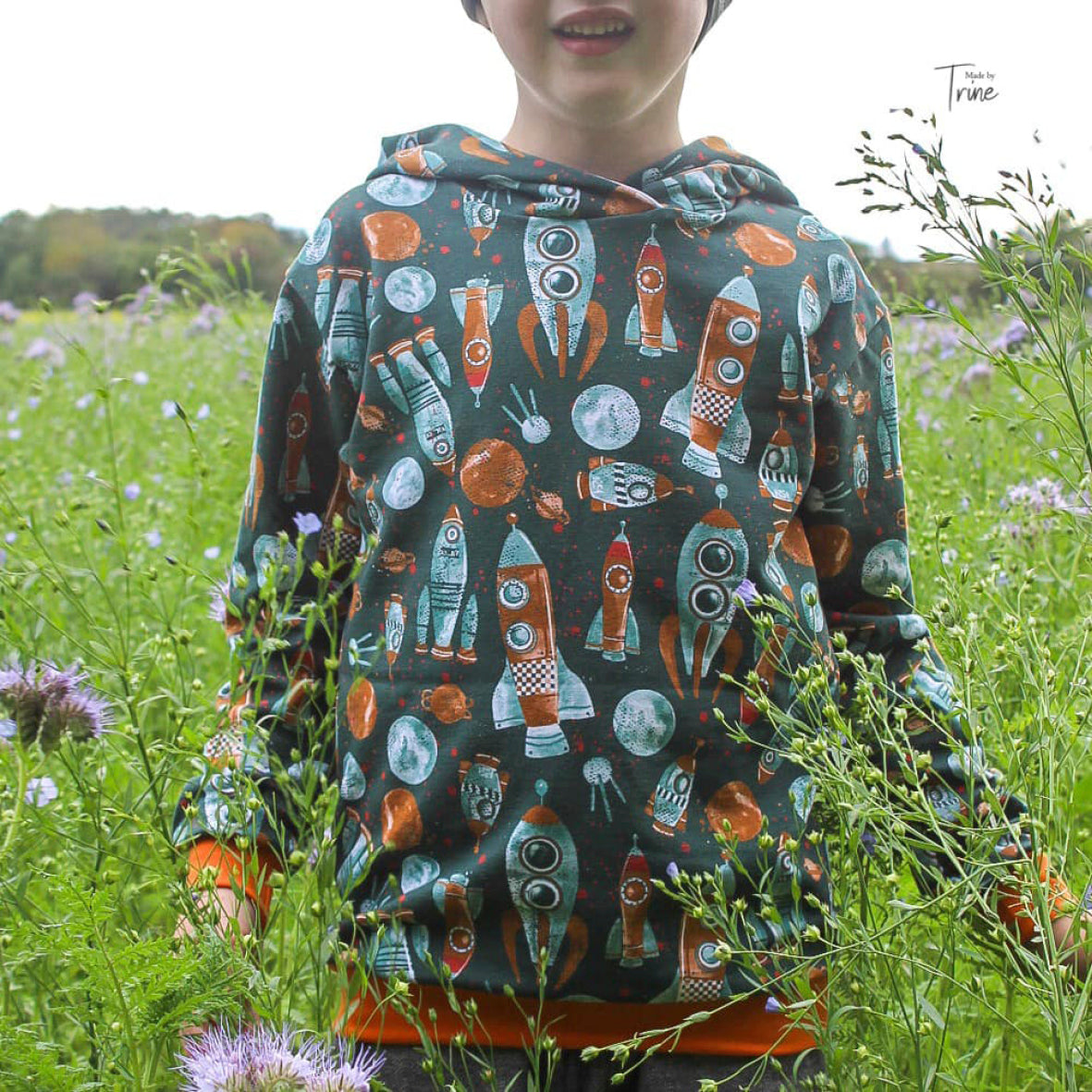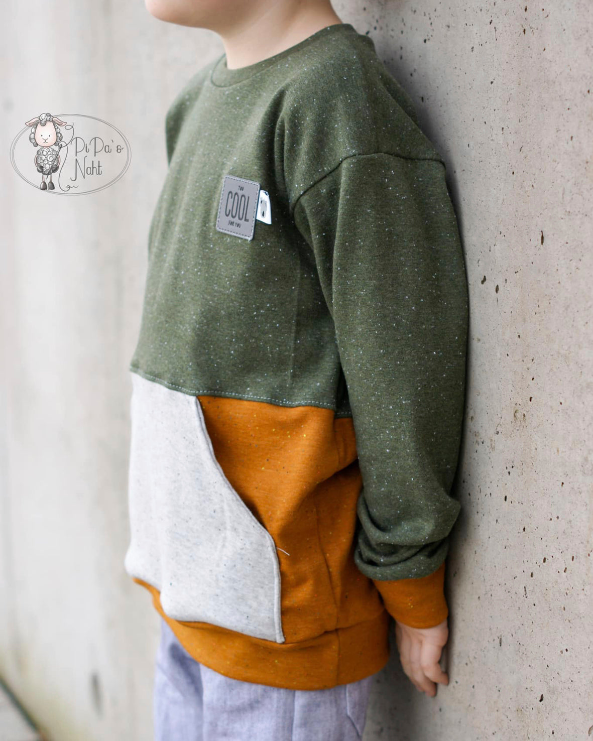 Der Pulli ist für (leicht) dehnbare Stoffe wie French Terry, Sweat oder Jacquard ausgelegt.