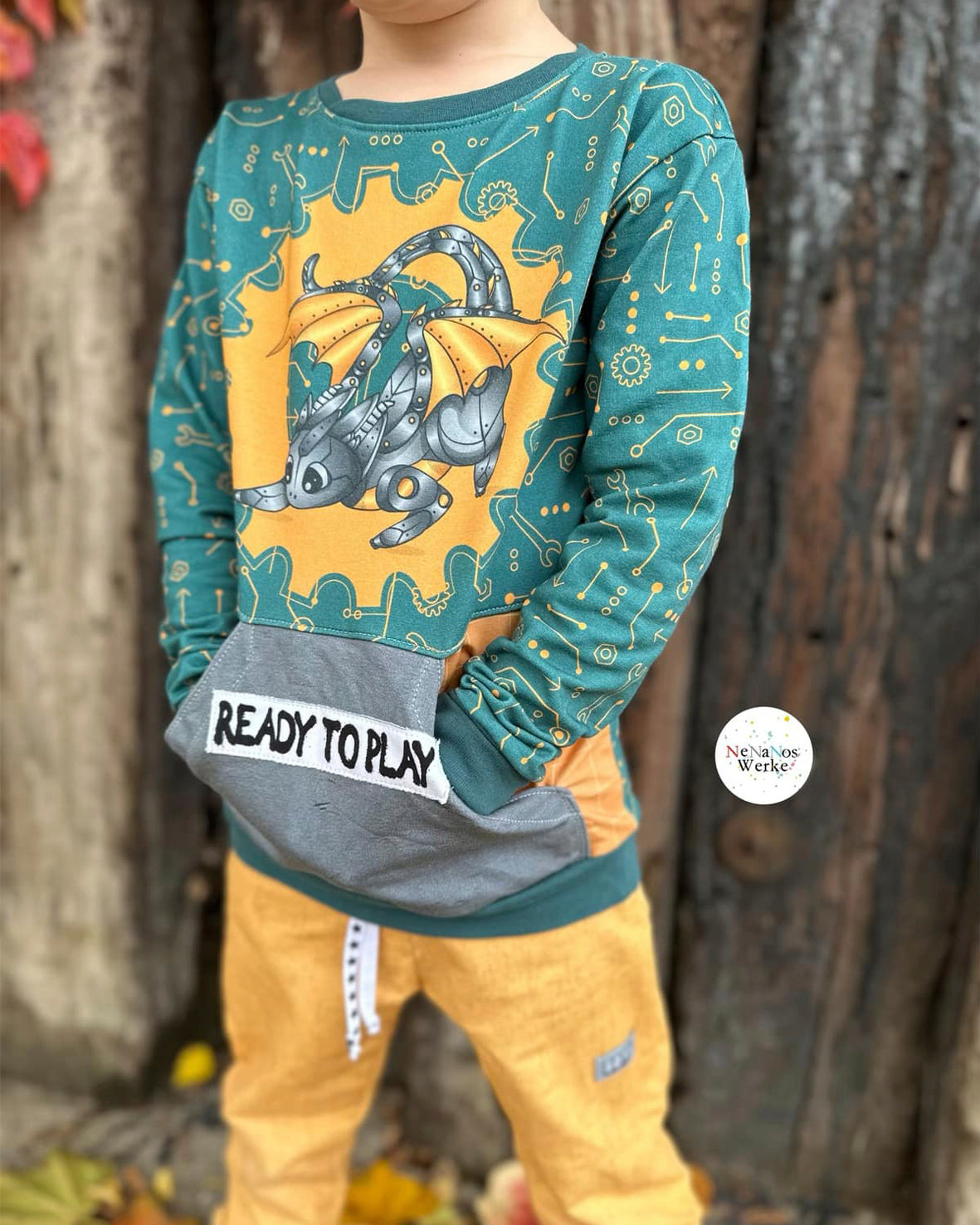 Da Kinder unterschiedlich sind und auch die Kleidung unterschiedlich mögen, ist eine schmale und eine lässige Variante des Schnittmusters enthalten