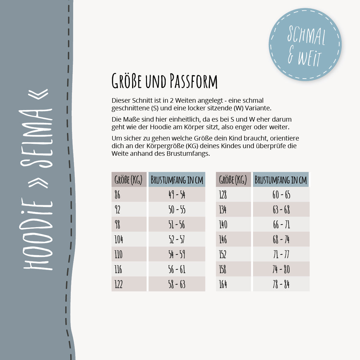 HOODIE "SELMA" | Nähanleitung und Schnittmuster | 2 Weiten Gr. 86-164