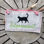 Katzenschild "Katzenhaushalt" Stickdatei ITH 13x18 Applikation Katze Schild Katzen Schilder