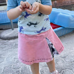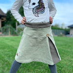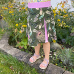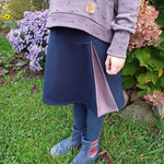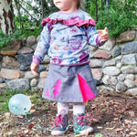 Das Schnittmuster „Miss Tiffi“ ist ein frecher Kinderrock in den Größen 74-164 mit Pfiff. Er ist auf Webware ausgelegt. Der Fakeschlitz lässt ihn frech und verspielt wirken und läd zu farblichen Akzenten ein. Durch den Gummi im Bund ist der Rock auch für die Kleinsten schon einfach alleine anzuziehen. Es werden weder Knöpfe noch ein Reißverschluss benötigt, so dass der Rock sowohl schnell als auch einfach zu nähen ist. Außerdem bietet er viel Bewegungsfreiheit zum Spielen und Toben.