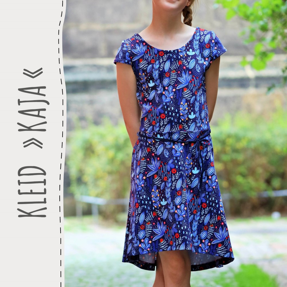KAJA ist ein schlichtes Kleid mit dem besonderen Etwas. Das Kleid wird vollkommen ohne Raffung und Kräuselung genäht, fällt schlicht und besticht durch den optionalen tiefen Rückenausschnitt mit Bindebändern. Außerdem kann es als Crop-Shirt oder als Shirt mit Schößchen genäht werden. Toll ist auch die Kombination aus ärmellosem Kleid mit Crop-Shirt zum Drüberziehen - der perfekte Zwiebellook.