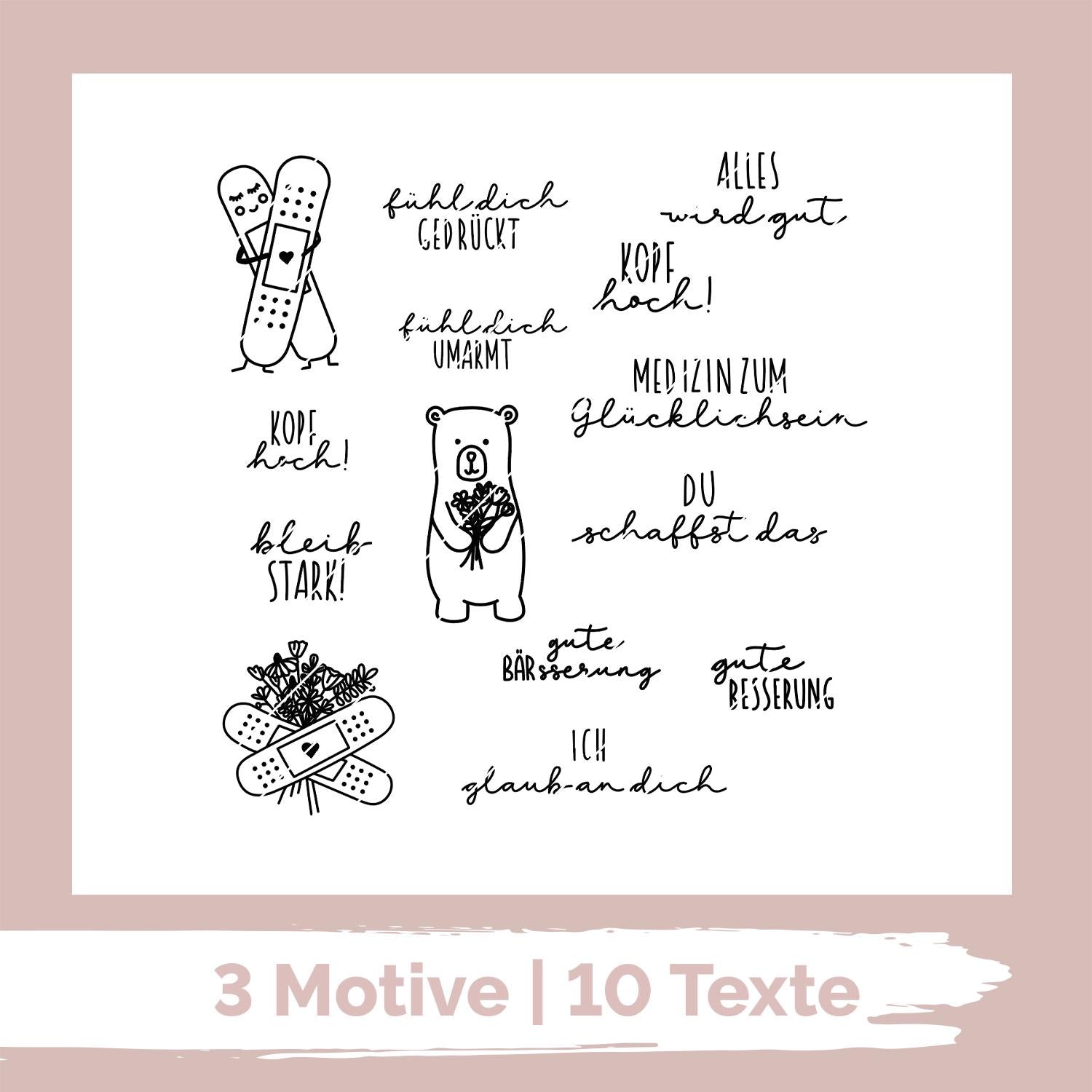Laser / Plotter-Datei-Bundle - Digitaler Download "Gute Besserung" - 4 verschiedene Brettchen / 3 Bildmotive / 10 Schriftzüge / grenzenlose Möglichkeiten Gewerbliche Nutzung erlaubt Die Datei enthält folgende Sprüche, für alles, was man lieben Menschen sagen kann, denen es gerade nicht gut geht: - Gute Besserung - Gut BÄRsserung - Alles wird gut - Ich glaub an dich - Kopf hoch - Bleib stark - Fühl dich gedrückt - Fühl dich umarmt - Medizin zum Glücklichsein - Du schaffst das Optimal zum Gravieren von Holzbrettchen oder Plotten mit 3 verschiedenen Bild-Motiven, außerdem erhaltet ihr 9 weitere Dateien zum Fertigen von Geschenksets für das Befestigen und Verpacken von z.B. Kerzen oder Gießprodukten. Für die gekreuzten Pflaster erhältst du außerdem ein Brettchen zum Einstecken von Trockenblumen. Du erhältst die Dateien im SVG-Format zum selber lasern. Es wird kein physisches Produkt versendet. Ihr erhaltet eine laserfertige Datei. Die einzelnen Motive dürft ihr beliebig zusammenstellen. Lightburn-Nutzer müssen ihre Importeinstellungen vor dem Öffnen auf 72 DPI (Illustrator) einstellen. ______________________________________________________________________________