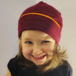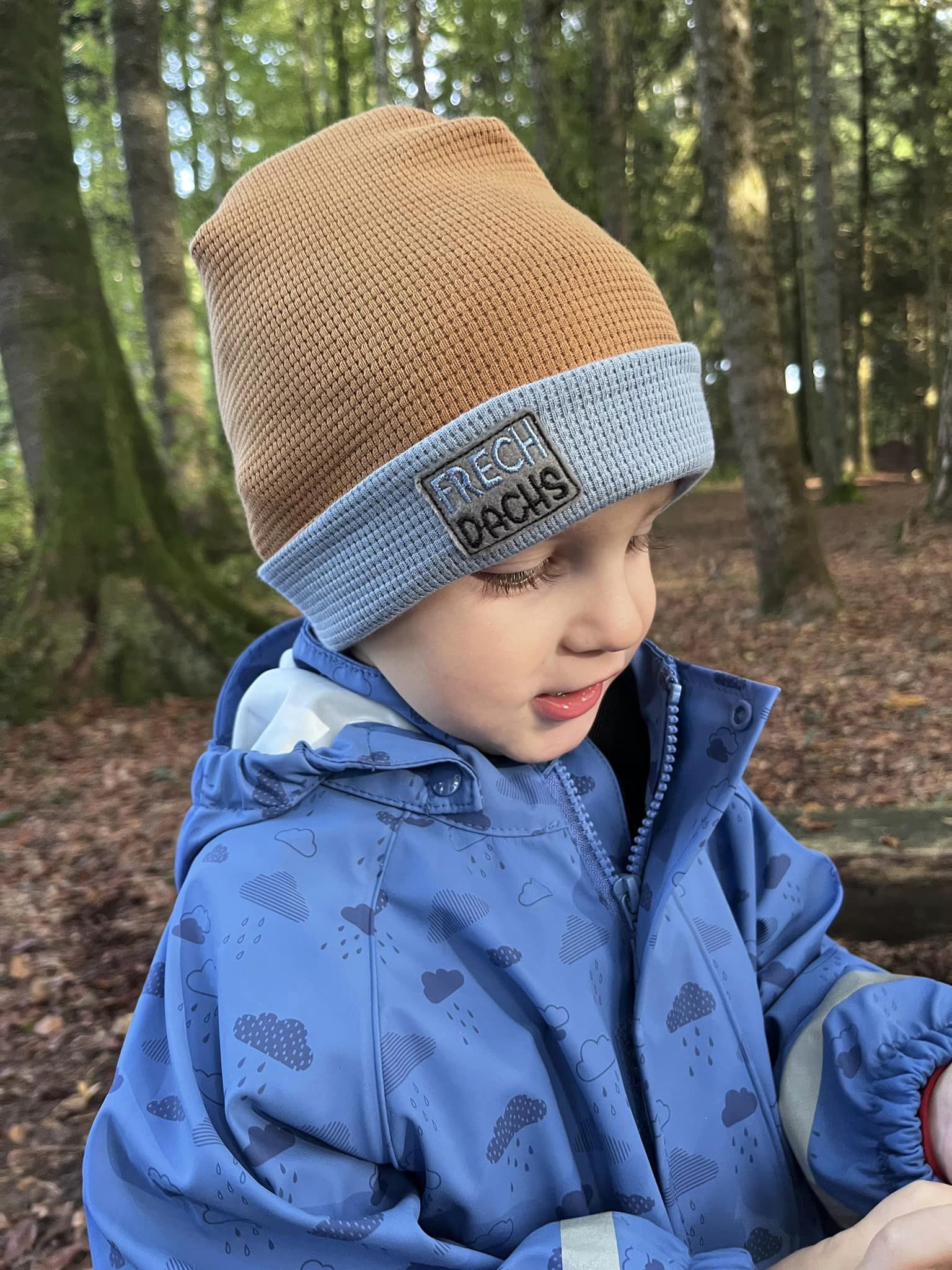 Das Schnittmuster „Hipster to be“ ist ein Kindermützenschnitt, der auf Wolljersey oder ähnlich dehnbare Stoffe ausgelegt ist. Durch die Teilungslinie besteht die Möglichkeit eine Paspel oder ein Spitzenband auf die obere Kante des Umschlags zu platzieren. Besonders für die dunkle Jahreszeit kann die Mütze rundherum zum Beispiel mit einem reflektierenden Paspelband versehen werden um eine maximale Sichtbarkeit zu erzielen.