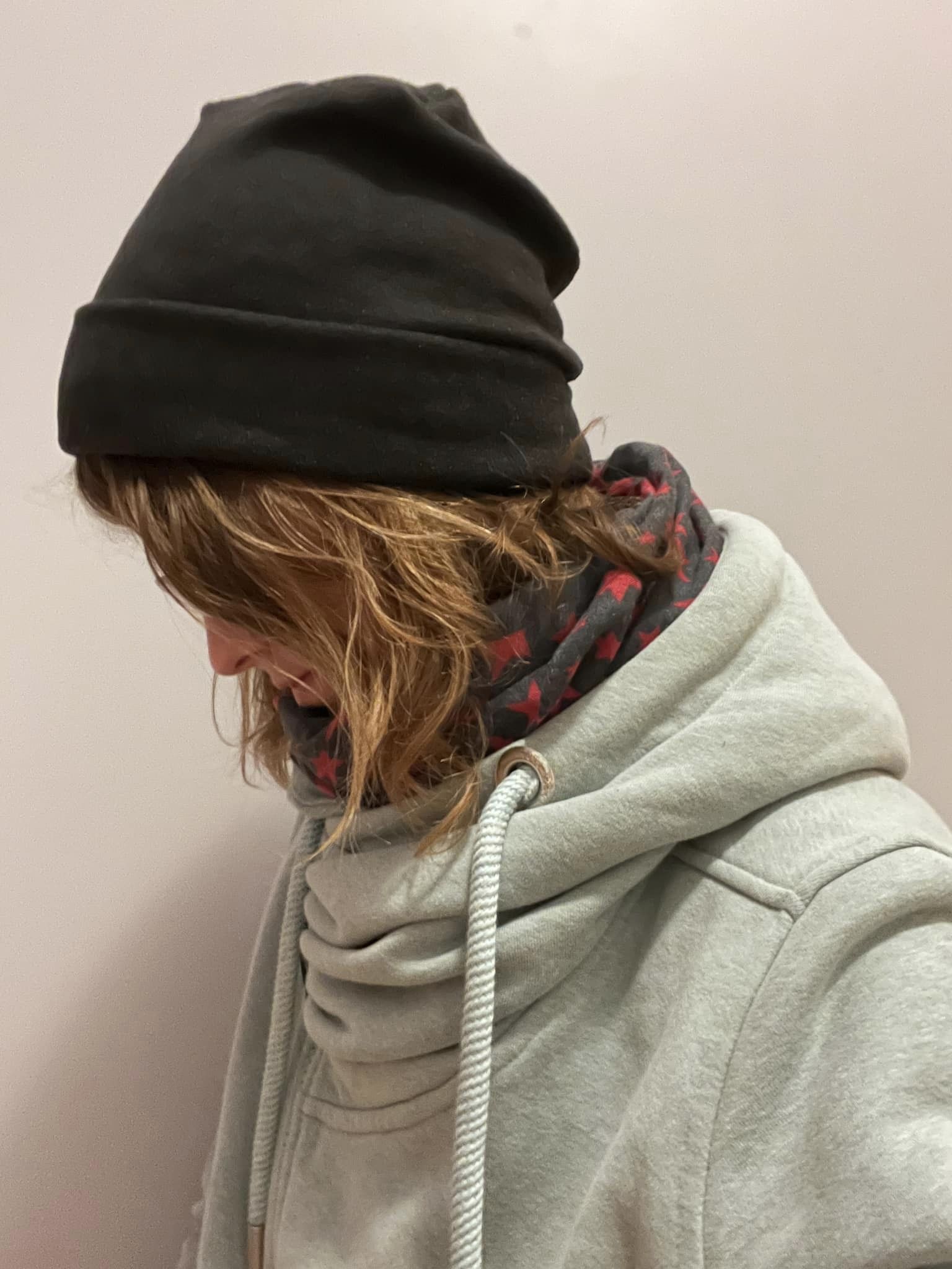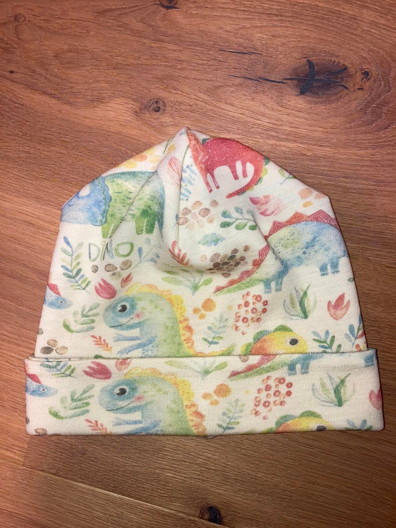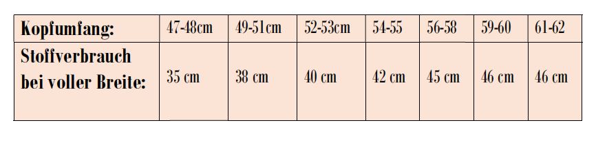 Der Stoffverbrauch ist sehr gering, da die Mütze nur am Umschlag doppelt ist.