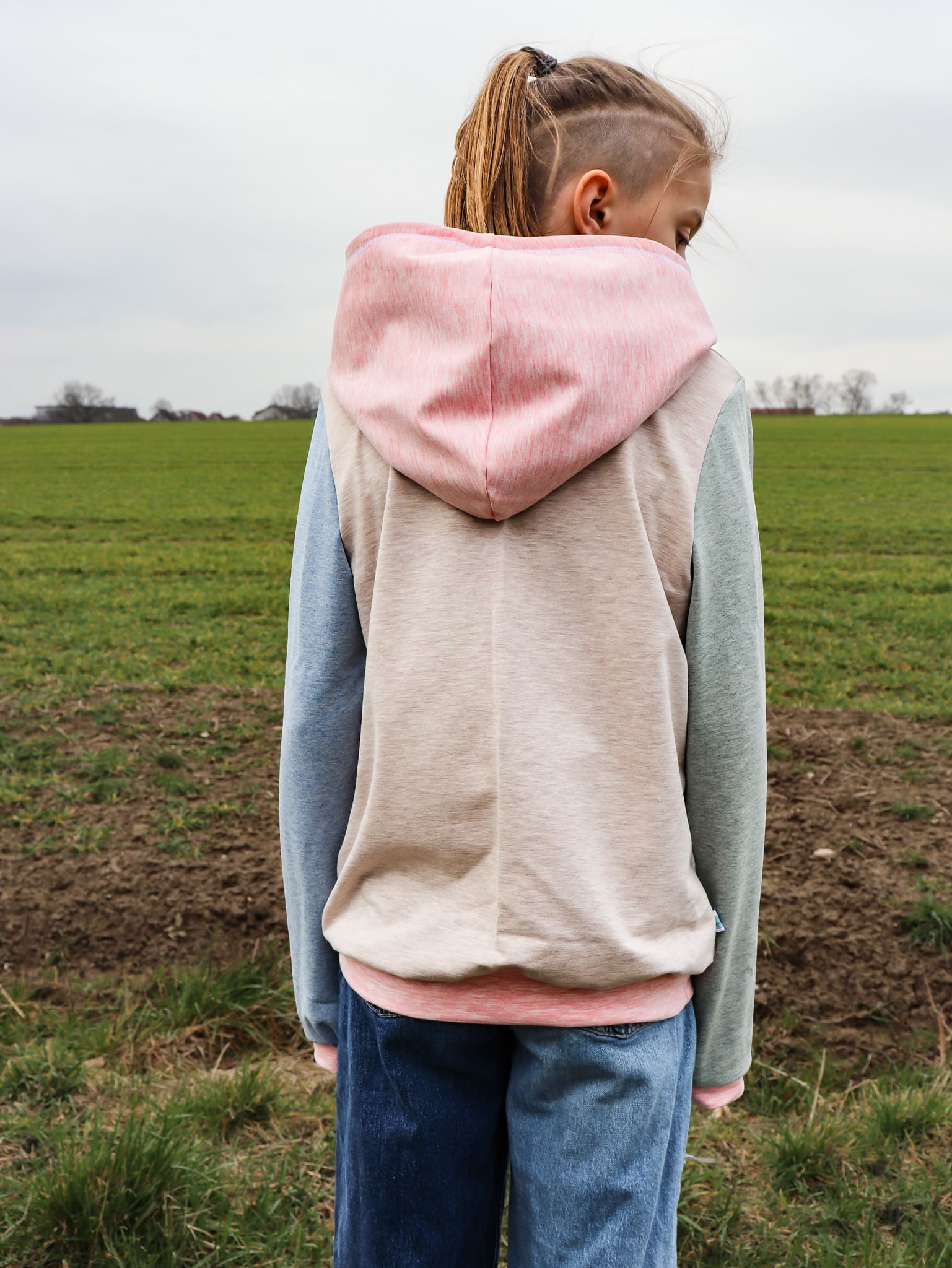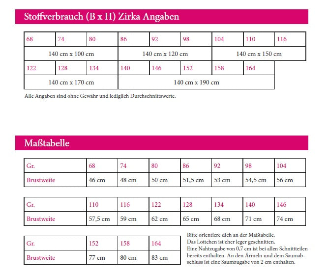 Das Schnittmuster eignet sich für dehnbare Stoffe, wie Baumwolljersey, Sweatstoffe, Nicki mit Elastan & ähnlich fallende Wirkware