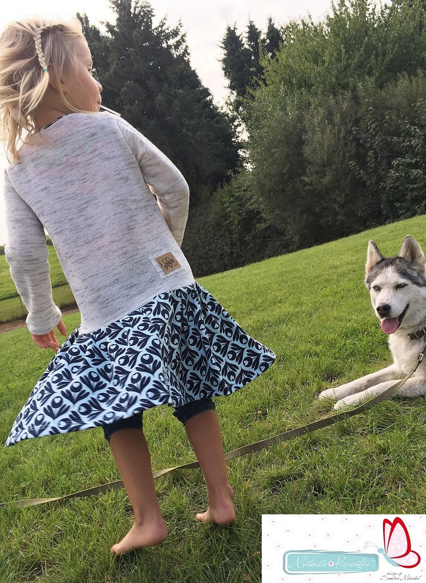 Das eBook „Lottchen“ ist ein vielseitiges Schnittmuster für Longshirt, Hoodie, Kleid oder Rock. Du kannst es aus dehnbaren Stoffen wie Jersey, Interlock oder Sweat nähen und die Varianten sogar miteinander kombinieren.