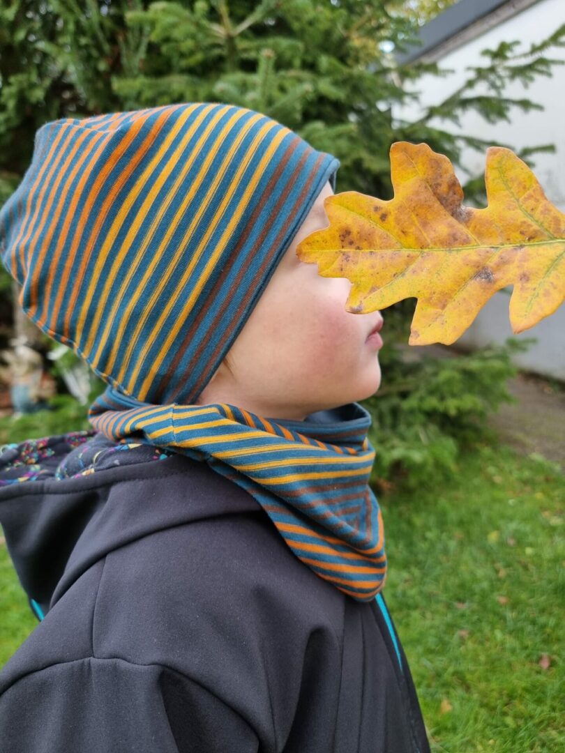- Mütze oder Beanie mit Bindebändchen (für Mützenwegwerfer ???? )