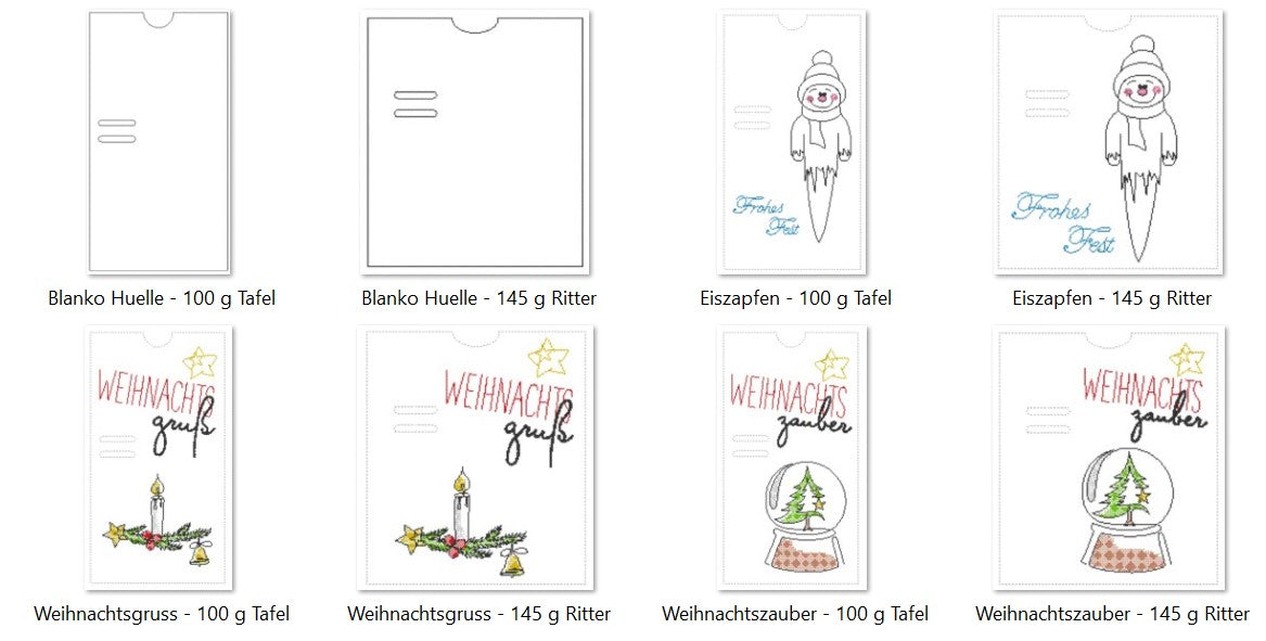 - 3 Motive auf je 2 Hüllen und je 1 Blanko-Datei