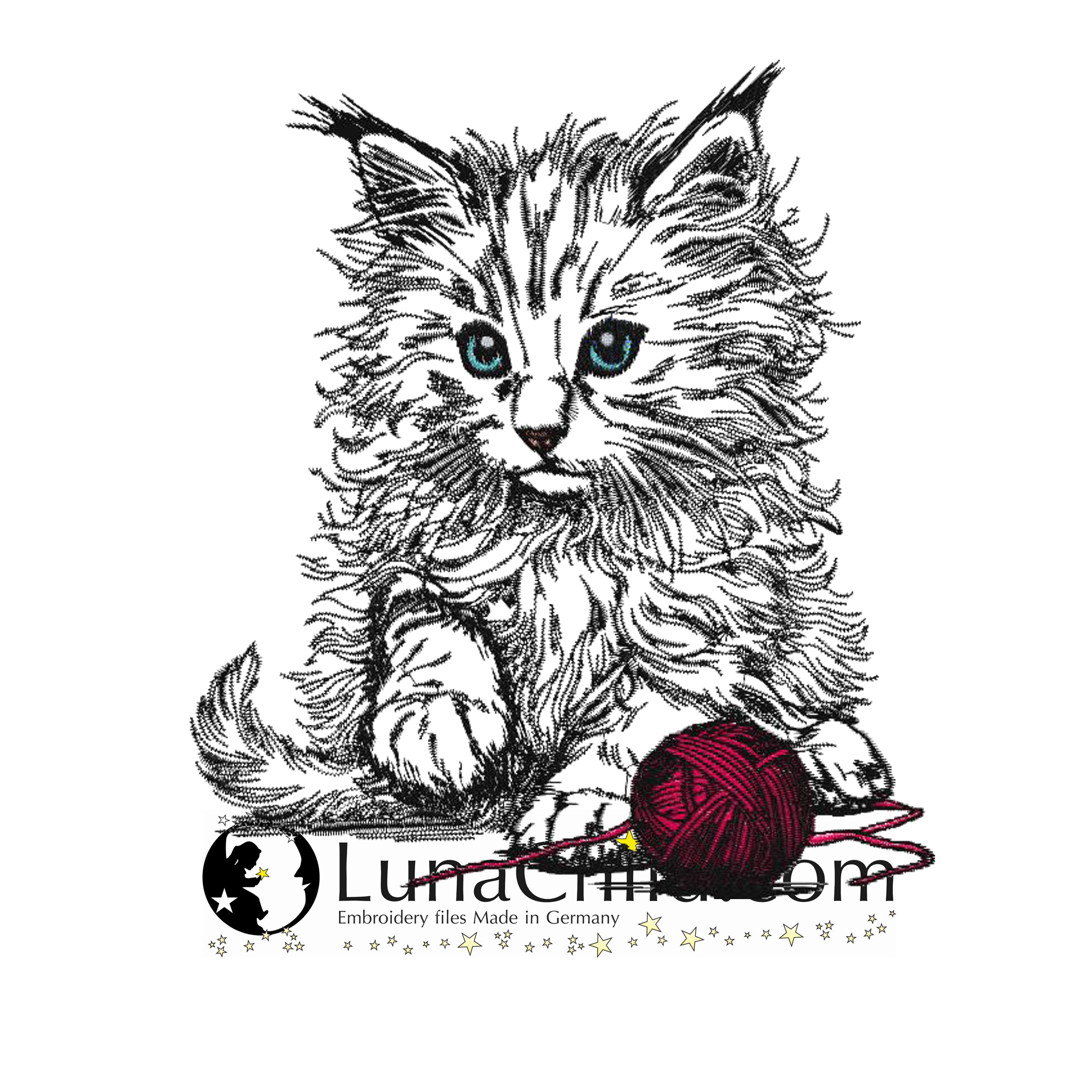 🐈⬛Die Stickdatei Katze mit Wolle "Shadow" von Lunachild ist ideal für Katzenliebhaber. Mit dieser detaillierten Datei kannst du das süße Kätzchen auf Kleidung, Taschen und mehr verewigen. Perfekt für kreative Projekte und ein einzigartiges Design! 🐈⬛