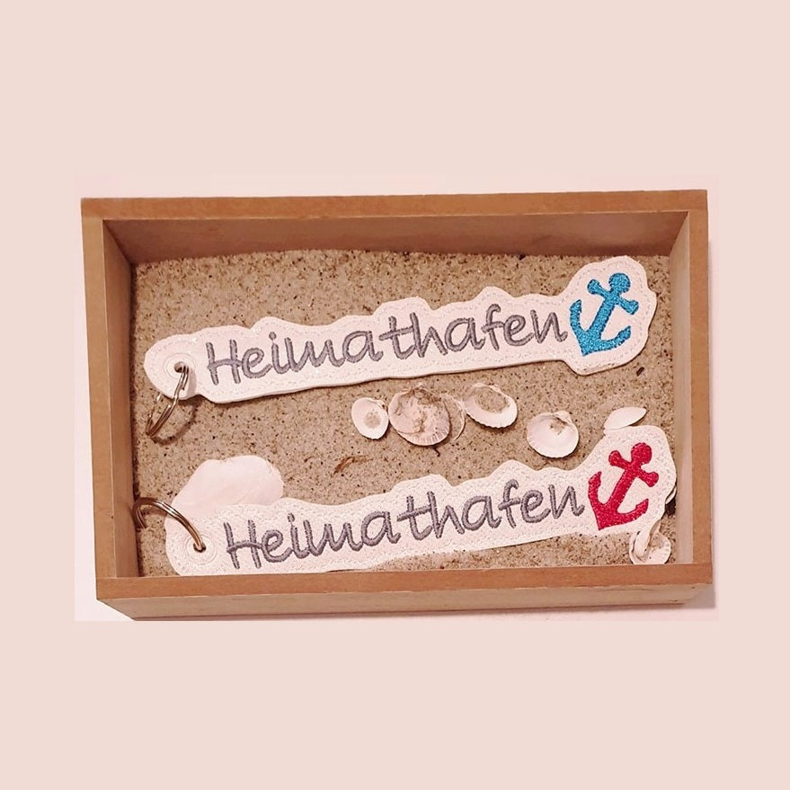 Stickdatei Anhänger "Heimat Hafen" mit Anker