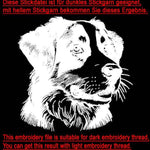 - Für realistische Stickdateien sind deutlich mehr Stiche als gewöhnlich nötig, damit sie ein schönes und detailreiches Ergebnis erhalten. Mit einem dickeren Garn und einer dickeren Nadel kann das Ergebnis unscharf und konturlos wirken. Zudem kann der Faden schneller reißen. Die Datei sollte auf einen festen Stoff sowie ein stabiles Stickvlies gestickt werden.