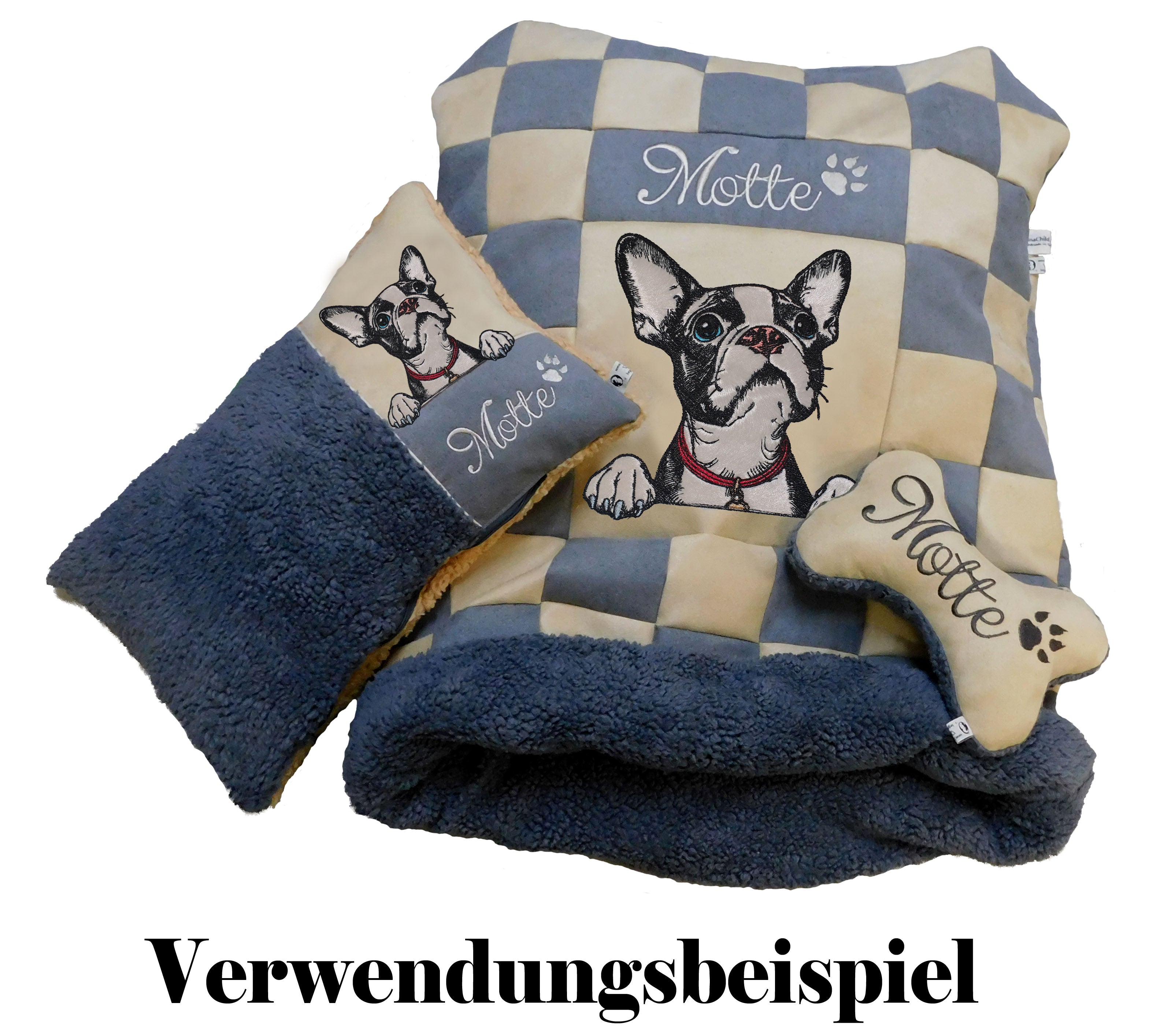- Es handelt sich um eine Applikation, in der dein farbiger Stoff eingestickt wird. Ich habe auf den Bildern ein Tierfell-Imitat benutzt. Eine detaillierte, bebilderte PDF-Anleitung in Deutsch und Englisch, sowie ein Link zu einem Video-Tutorial (deutsch, englisch und spanisch), ist im Download enthalten.