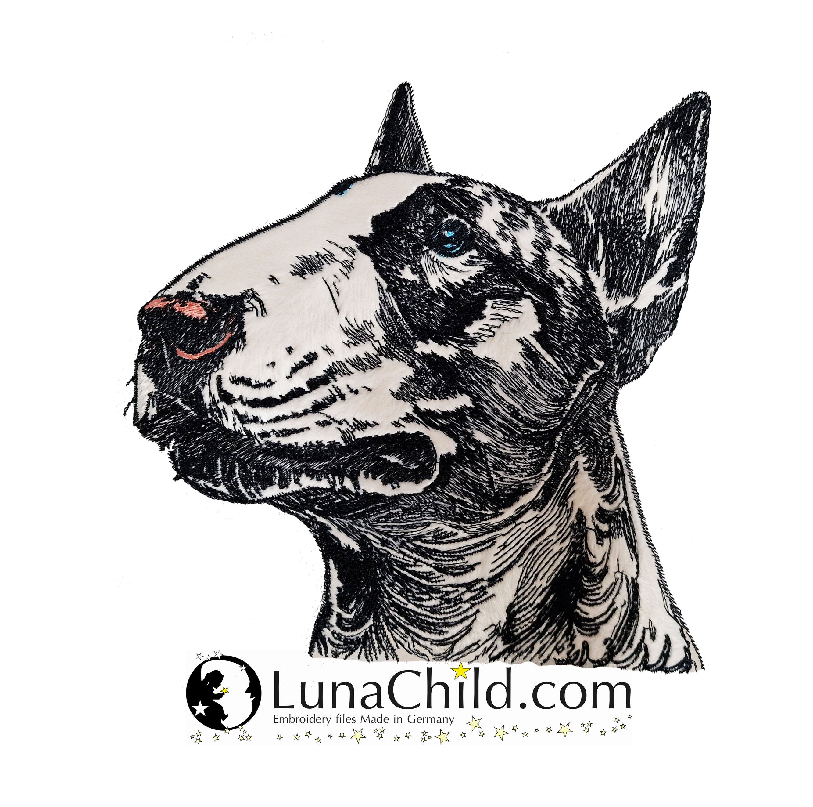 🐕Die Stickdatei Hunderasse Bullterrier "Chiquita " als Applikation von Lunachild ist ideal für Hundeliebhaber. Mit dieser detaillierten Datei kannst du den süßen Hund auf Kleidung, Taschen und mehr verewigen. Perfekt für kreative Projekte und ein einzigartiges Design!🐕