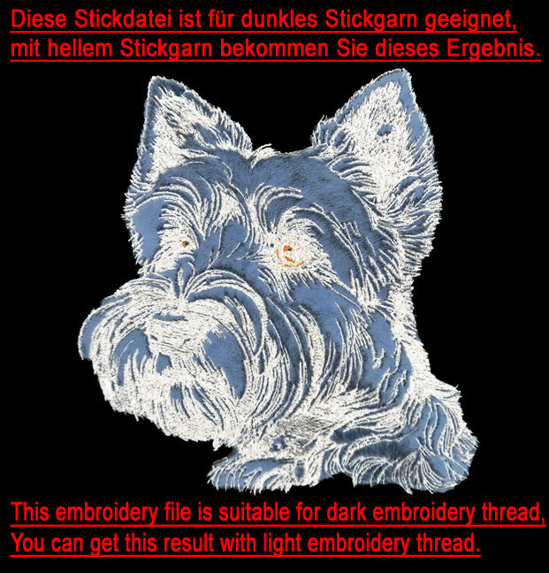 🐕Die Stickdatei Hunderasse Cairn Terrier "Cully" als Applikation von Lunachild ist ideal für Hundeliebhaber. Mit dieser detaillierten Datei kannst du den süßen Hund auf Kleidung, Taschen und mehr verewigen. Perfekt für kreative Projekte und ein einzigartiges Design!🐕