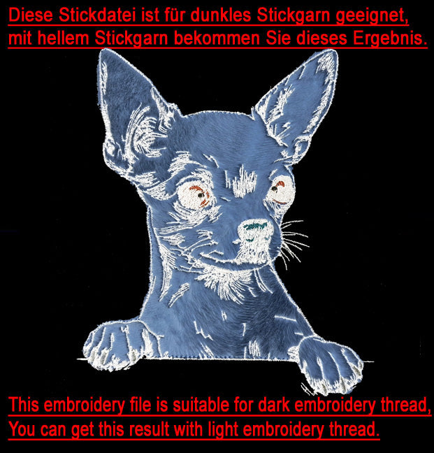 🐕Die Stickdatei Hunderasse Chihuahua "Aage" als Applikation von Lunachild ist ideal für Hundeliebhaber. Mit dieser detaillierten Datei kannst du den süßen Hund auf Kleidung, Taschen und mehr verewigen. Perfekt für kreative Projekte und ein einzigartiges Design!🐕