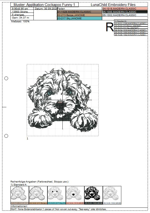 🐕Die Stickdatei Hunderasse Cockapoo "Funny" als Applikation von Lunachild ist ideal für Hundeliebhaber. Mit dieser detaillierten Datei kannst du den süßen Hund auf Kleidung, Taschen und mehr verewigen. Perfekt für kreative Projekte und ein einzigartiges Design!🐕