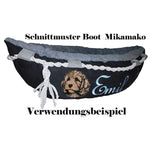 - Es handelt sich um eine Applikation, in der dein farbiger Stoff eingestickt wird. Ich habe auf den Bildern ein Tierfell-Imitat benutzt.