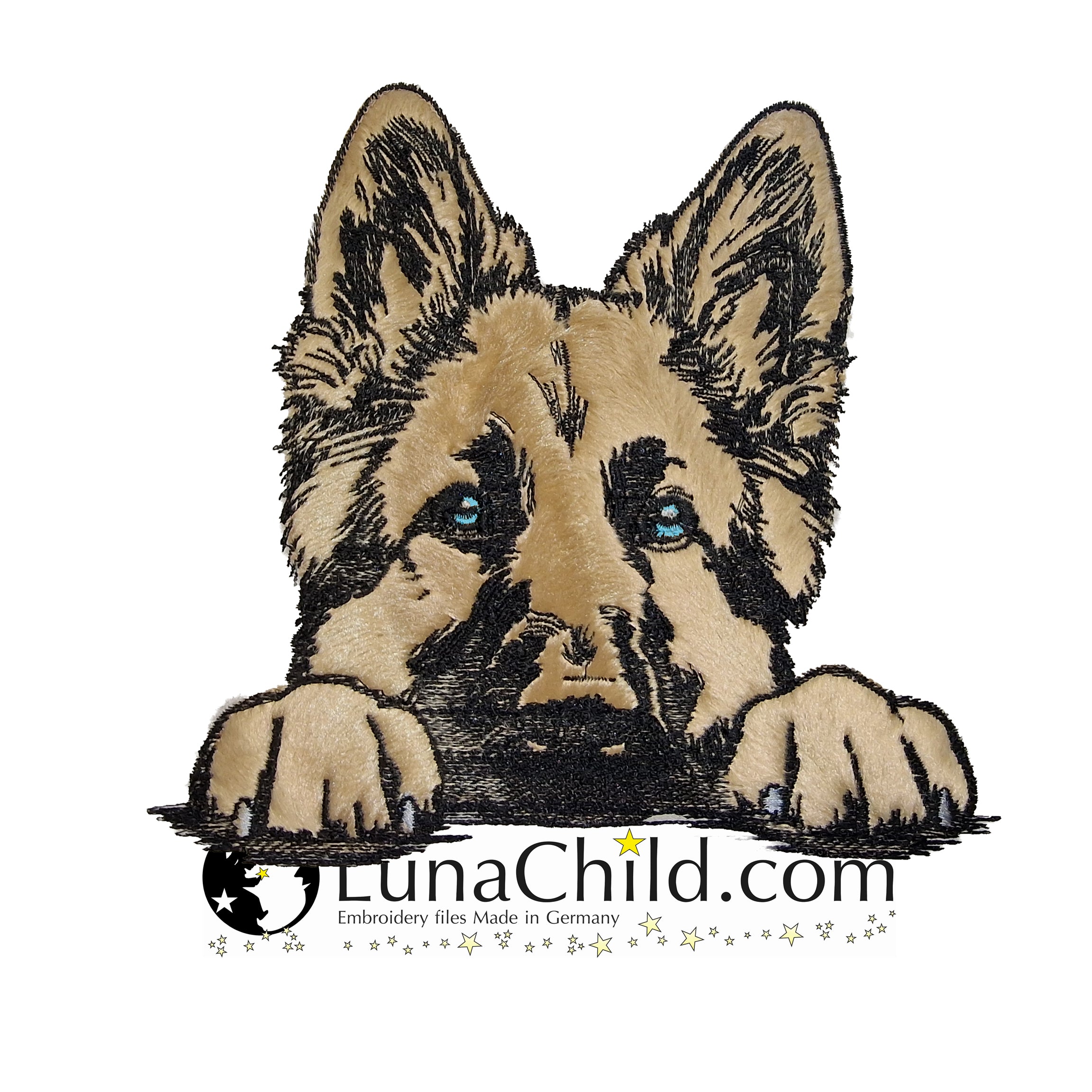 🐕Die Stickdatei Hunderasse Deutscher Schäferhund "Helli" als Applikation von Lunachild ist ideal für Hundeliebhaber. Mit dieser detaillierten Datei kannst du den süßen Hund auf Kleidung, Taschen und mehr verewigen. Perfekt für kreative Projekte und ein einzigartiges Design!🐕
