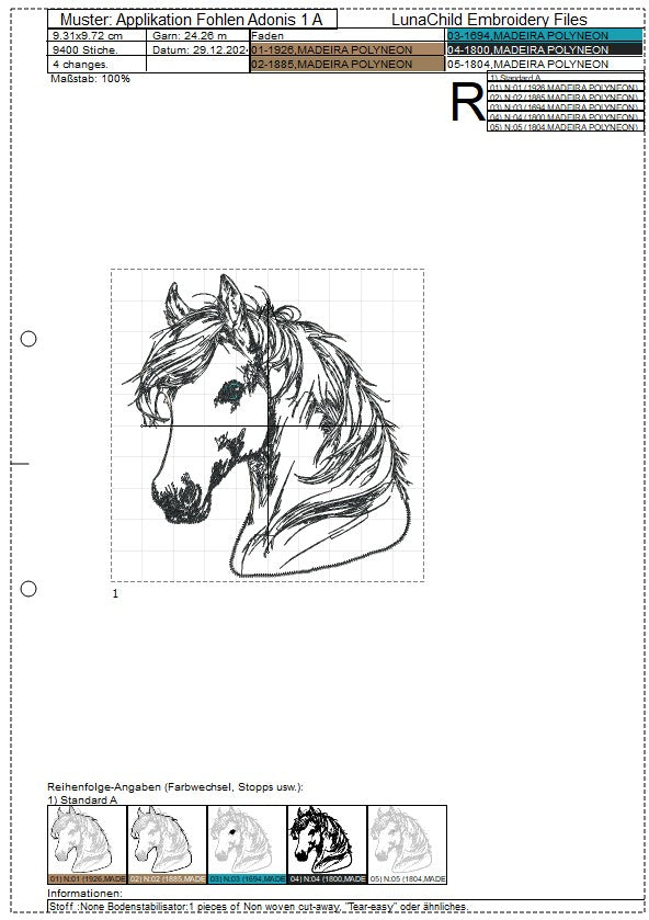 🐴Stickdatei Applikation Fohlen "Adonis" 🐴