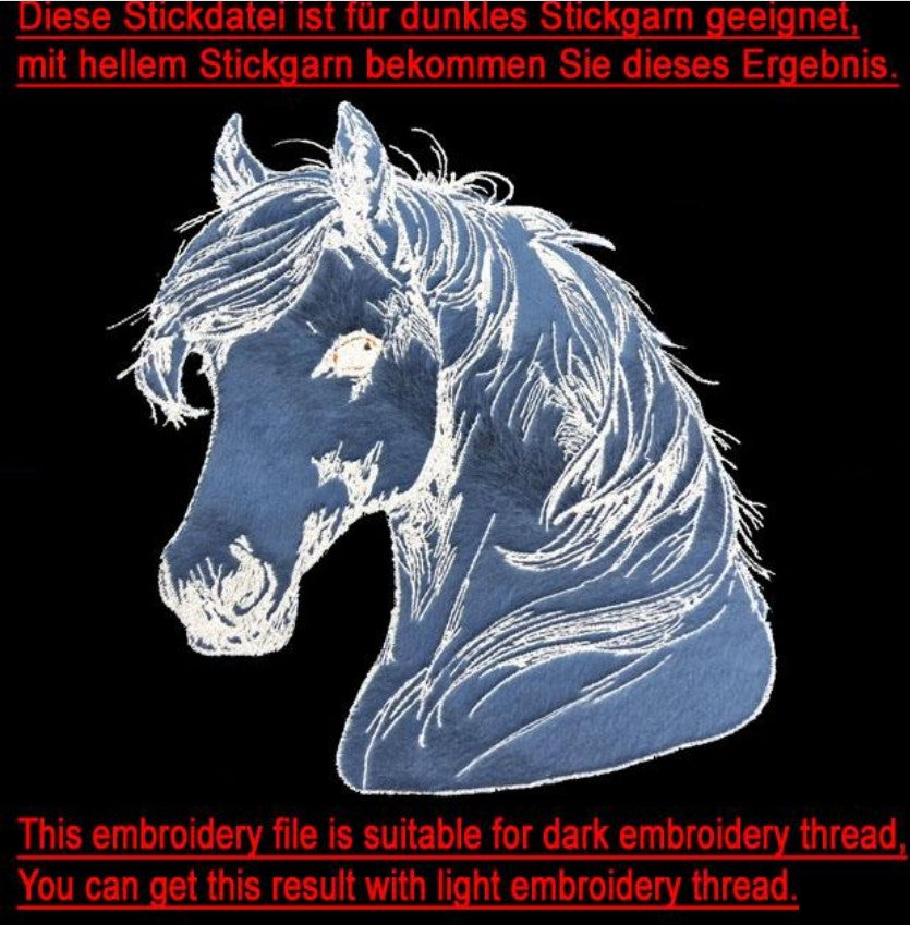 - Für realistische Stickdateien sind deutlich mehr Stiche als gewöhnlich nötig, damit sie ein schönes und detailreiches Ergebnis erhalten. Mit einem dickeren Garn und einer dickeren Nadel kann das Ergebnis unscharf und konturlos wirken. Zudem kann der Faden schneller reißen. Die Datei sollte auf einen festen Stoff sowie ein stabiles Stickvlies gestickt werden.