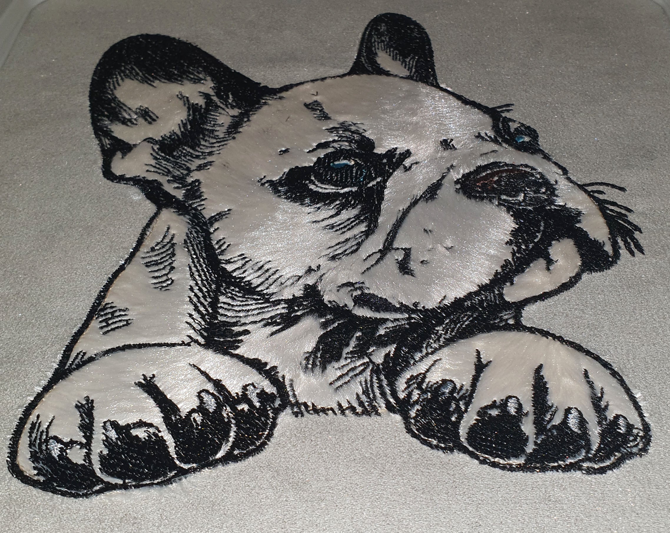 - Für realistische Stickdateien sind deutlich mehr Stiche als gewöhnlich nötig, damit sie ein schönes und detailreiches Ergebnis erhalten. Mit einem dickeren Garn und einer dickeren Nadel kann das Ergebnis unscharf und konturlos wirken. Zudem kann der Faden schneller reißen. Die Datei sollte auf einen festen Stoff sowie ein stabiles Stickvlies gestickt werden.