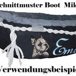 - Es handelt sich um eine Applikation, in der dein farbiger Stoff eingestickt wird. Ich habe auf den Bildern ein Tierfell-Imitat benutzt.