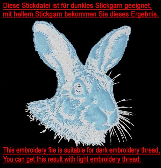 - Für realistische Stickdateien sind deutlich mehr Stiche als gewöhnlich nötig, damit sie ein schönes und detailreiches Ergebnis erhalten. Mit einem dickeren Garn und einer dickeren Nadel kann das Ergebnis unscharf und konturlos wirken. Zudem kann der Faden schneller reißen. Die Datei sollte auf einen festen Stoff sowie ein stabiles Stickvlies gestickt werden.
