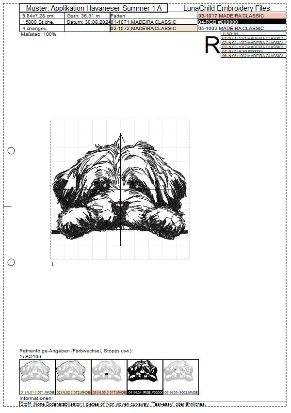 🐕Die Stickdatei Hunderasse Havaneser Welpe "Summer" als Applikation von Lunachild ist ideal für Hundeliebhaber. Mit dieser detaillierten Datei kannst du den süßen Hund auf Kleidung, Taschen und mehr verewigen. Perfekt für kreative Projekte und ein einzigartiges Design!🐕