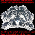- Es handelt sich um eine Applikation, in der dein farbiger Stoff eingestickt wird. Ich habe auf den Bildern ein Tierfell-Imitat benutzt. Eine detaillierte, bebilderte PDF-Anleitung in Deutsch und Englisch, sowie ein Link zu einem Video-Tutorial (deutsch, englisch und spanisch), ist im Download enthalten.