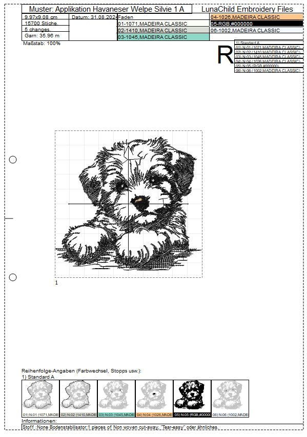 🐕Die Stickdatei Hunderasse Havaneser "Silvie" als Applikation von Lunachild ist ideal für Hundeliebhaber. Mit dieser detaillierten Datei kannst du den süßen Hund auf Kleidung, Taschen und mehr verewigen. Perfekt für kreative Projekte und ein einzigartiges Design!🐕