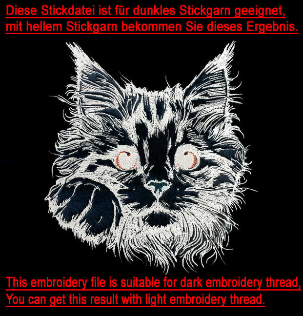 - Für realistische Stickdateien sind deutlich mehr Stiche als gewöhnlich nötig, damit sie ein schönes und detailreiches Ergebnis erhalten. Mit einem dickeren Garn und einer dickeren Nadel kann das Ergebnis unscharf und konturlos wirken. Zudem kann der Faden schneller reißen. Die Datei sollte auf einen festen Stoff sowie ein stabiles Stickvlies gestickt werden.