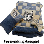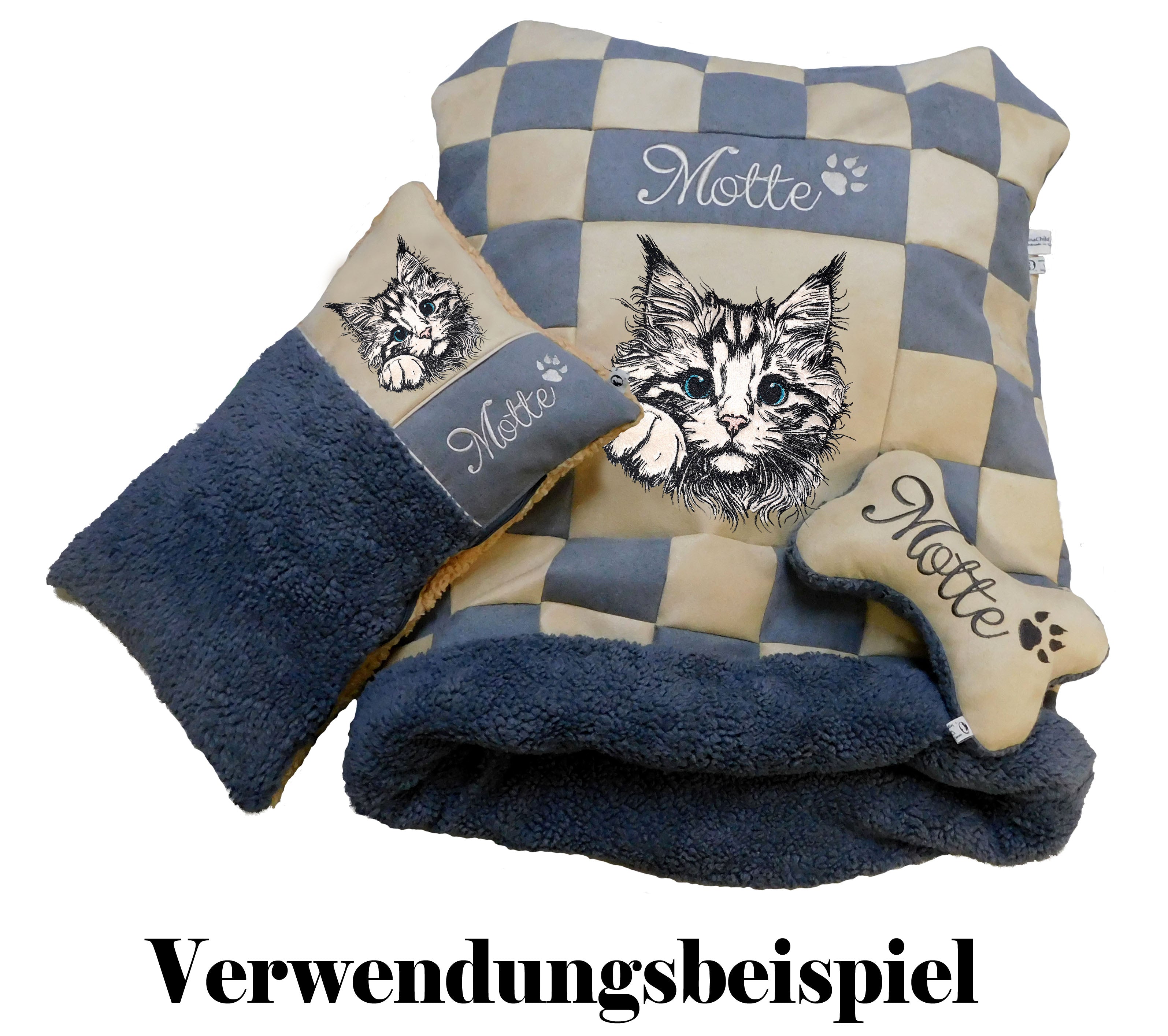 - Es handelt sich um eine Applikation, in der dein farbiger Stoff eingestickt wird. Ich habe auf den Bildern ein Tierfell-Imitat benutzt. Eine detaillierte, bebilderte PDF-Anleitung in Deutsch und Englisch, sowie ein Link zu einem Video-Tutorial (deutsch, englisch und spanisch), ist im Download enthalten.
