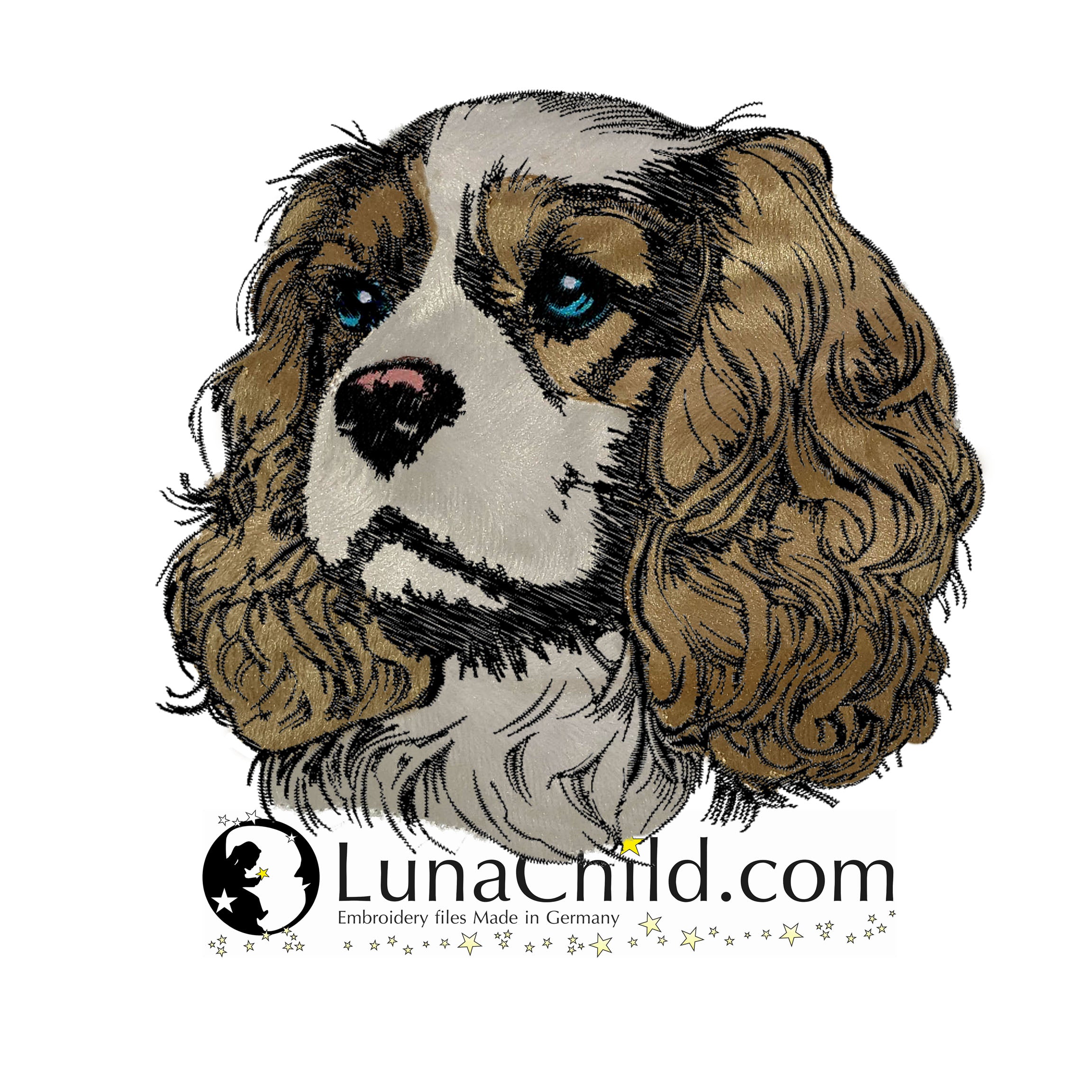🐕Die Stickdatei Hunderasse King Charles Cavalier "Agatha" als Applikation von Lunachild ist ideal für Hundeliebhaber. Mit dieser detaillierten Datei kannst du den süßen Hund auf Kleidung, Taschen und mehr verewigen. Perfekt für kreative Projekte und ein einzigartiges Design!🐕