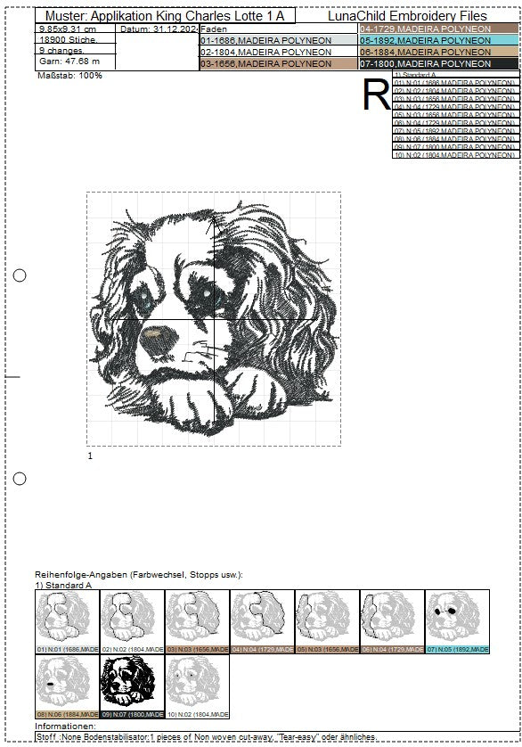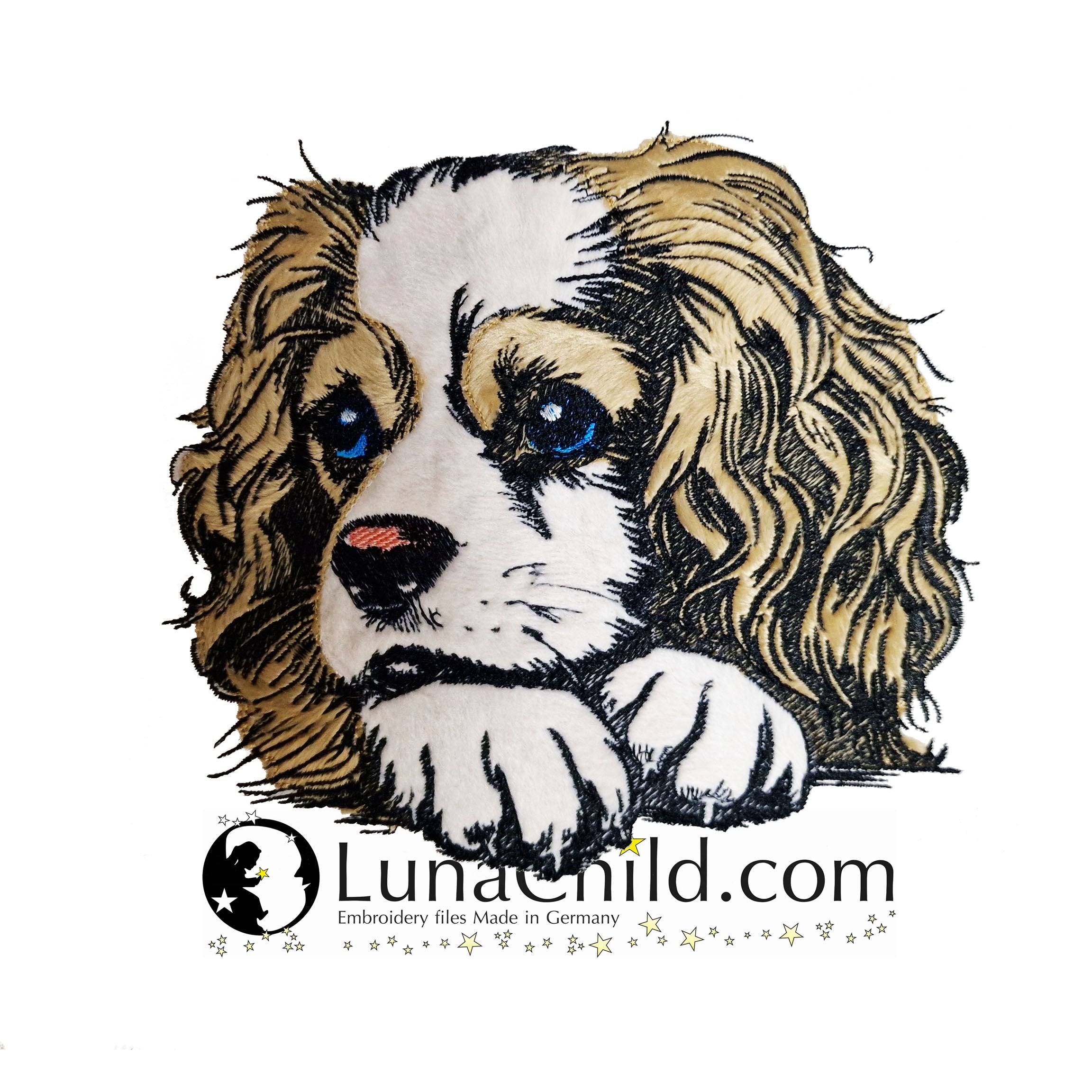 🐕Die Stickdatei Hunderasse King Charles Cavalier "Lotte" als Applikation von Lunachild ist ideal für Hundeliebhaber. Mit dieser detaillierten Datei kannst du den süßen Hund auf Kleidung, Taschen und mehr verewigen. Perfekt für kreative Projekte und ein einzigartiges Design!🐕