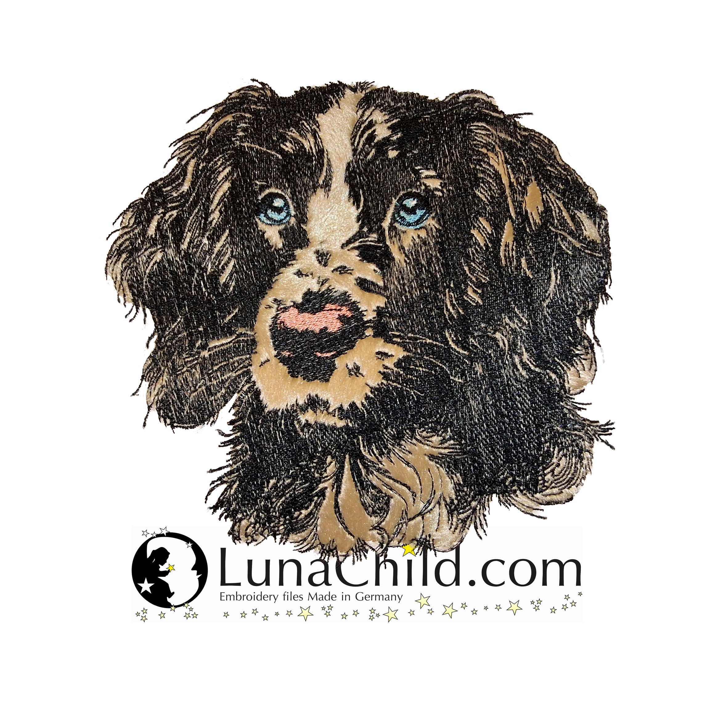🐕Die Stickdatei Hunderasse Kleiner Münsterländer "Addy" als Applikation von Lunachild ist ideal für Hundeliebhaber. Mit dieser detaillierten Datei kannst du den süßen Hund auf Kleidung, Taschen und mehr verewigen. Perfekt für kreative Projekte und ein einzigartiges Design!