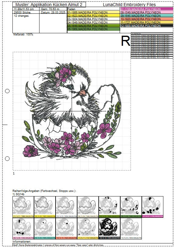 🐣Die Stickdatei Küken "Almut" als Applikation von Lunachild ist ideal für die Osterzeit. Mit dieser detaillierten Datei kannst du das süße Küken auf Kleidung, Taschen und mehr verewigen. Perfekt für kreative Projekte und ein einzigartiges Design!🐣