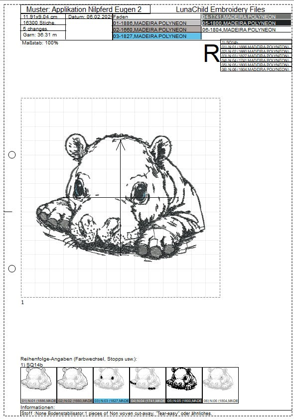 🦛Die Stickdatei Nilpferd Baby "Eugen" als Applikation von Lunachild ist ideal für Tierliebhaber. Mit dieser detaillierten Datei kannst du das süße Nashorn auf Kleidung, Taschen und mehr verewigen. Perfekt für kreative Projekte und ein einzigartiges Design!🦛