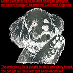 - Es handelt sich um eine Applikation, in der dein farbiger Stoff eingestickt wird. Ich habe auf den Bildern ein Tierfell-Imitat benutzt. Eine detaillierte, bebilderte PDF-Anleitung in Deutsch und Englisch, sowie ein Link zu einem Video-Tutorial (deutsch, englisch und spanisch), ist im Download enthalten.