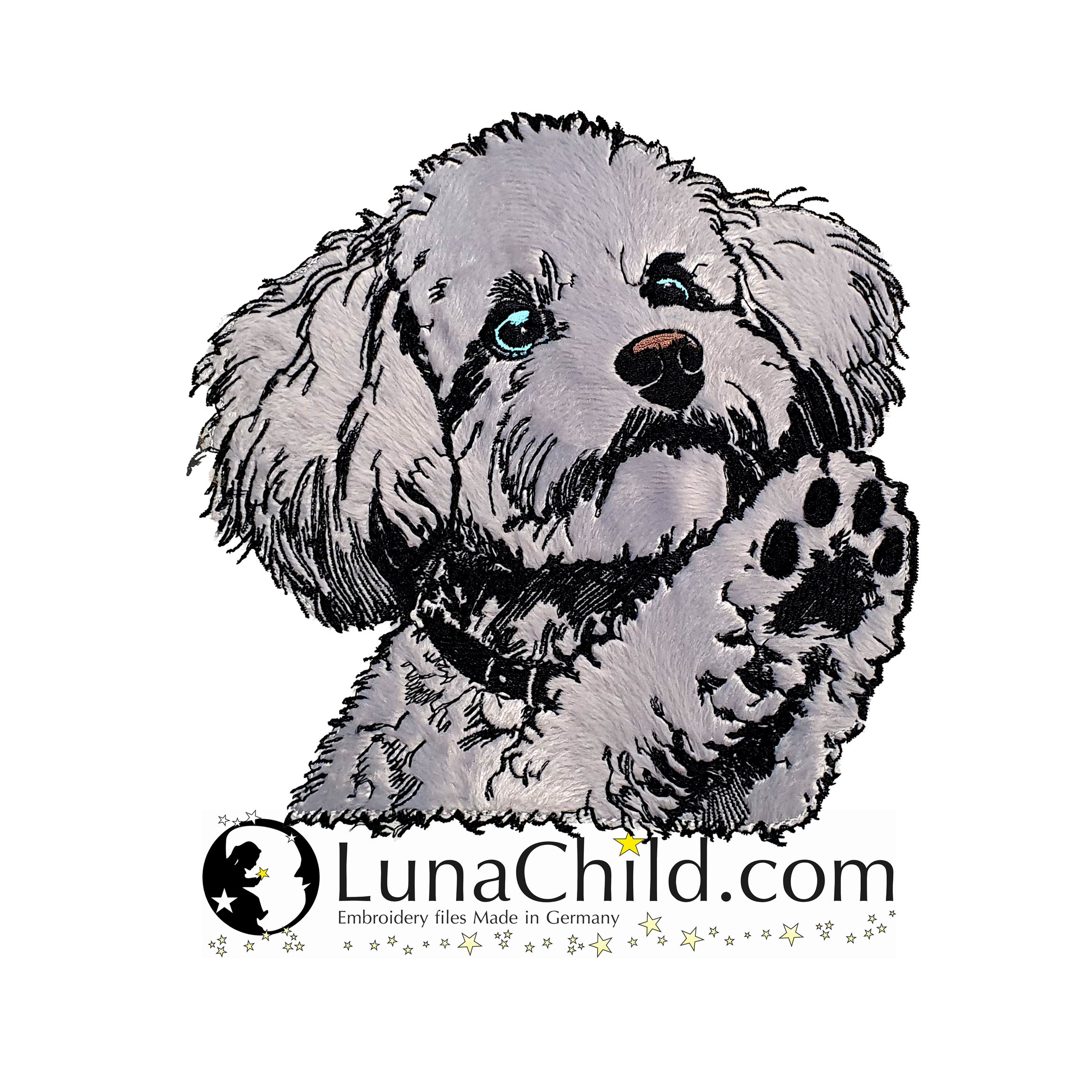 🐕Die Stickdatei Hunderasse Pudel "Farly" als Applikation von Lunachild ist ideal für Hundeliebhaber. Mit dieser detaillierten Datei kannst du den süßen Hund auf Kleidung, Taschen und mehr verewigen. Perfekt für kreative Projekte und ein einzigartiges Design!🐕
