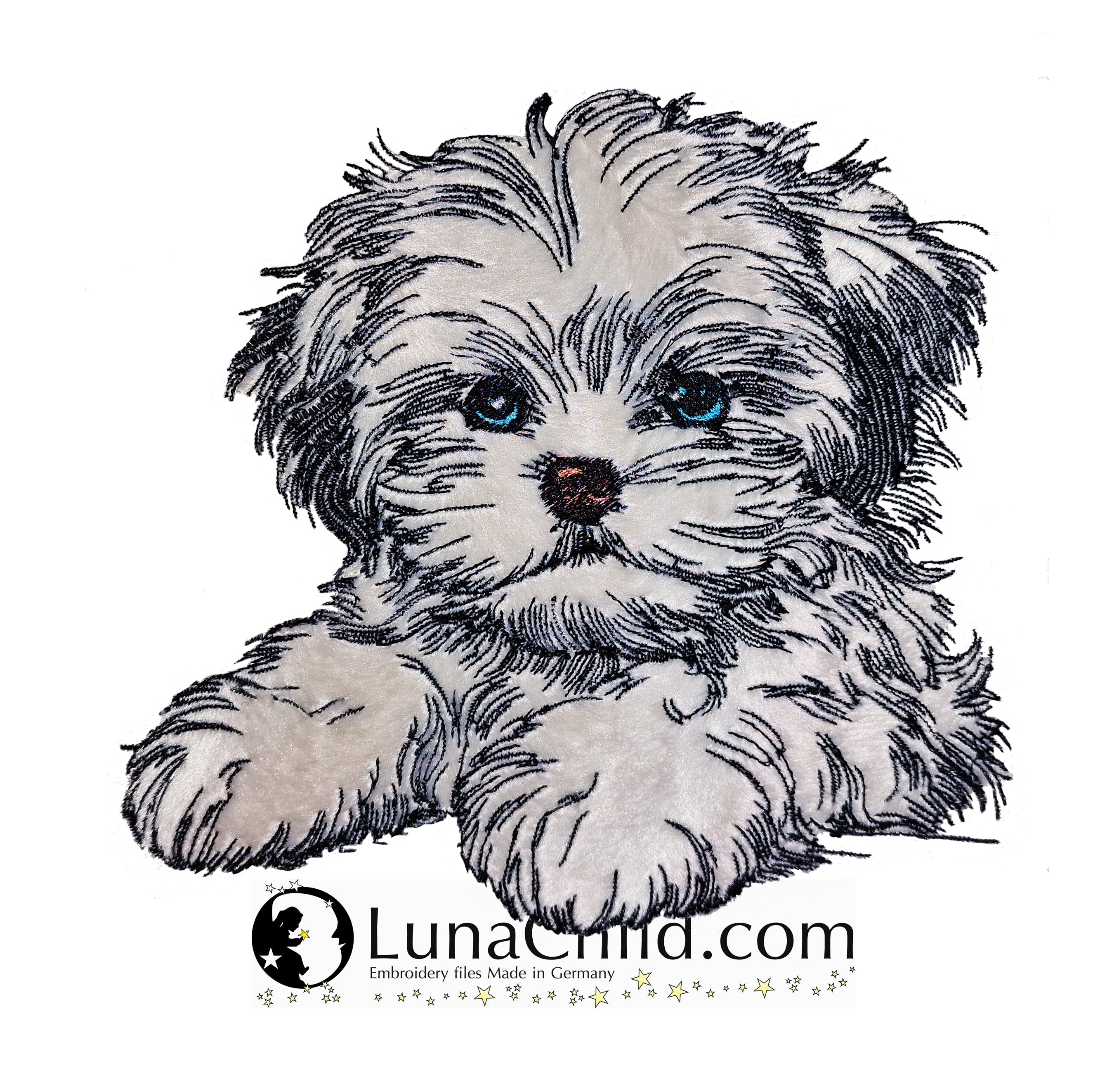 🐕Die Stickdatei Hunderasse Shi Tzu Welpe "Lesley" als Applikation von Lunachild ist ideal für Hundeliebhaber. Mit dieser detaillierten Datei kannst du den süßen Hund auf Kleidung, Taschen und mehr verewigen. Perfekt für kreative Projekte und ein einzigartiges Design!🐕