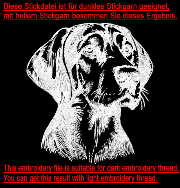 - Für realistische Stickdateien sind deutlich mehr Stiche als gewöhnlich nötig, damit sie ein schönes und detailreiches Ergebnis erhalten. Mit einem dickeren Garn und einer dickeren Nadel kann das Ergebnis unscharf und konturlos wirken. Zudem kann der Faden schneller reißen. Die Datei sollte auf einen festen Stoff sowie ein stabiles Stickvlies gestickt werden.